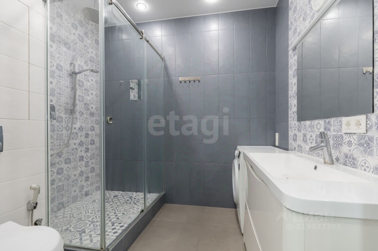 О ВАННОЙ: -совмещенный санузел с большой душевой кабиной, большой раковиной, унитазом и стиральной машинкой. Много места под косметические принадлежности, полотенца и другие принадлежности в ящиках под раковиной, стояк с водоснабжением над туалетом открывается нажатием на стену. Много свободного пространства.
