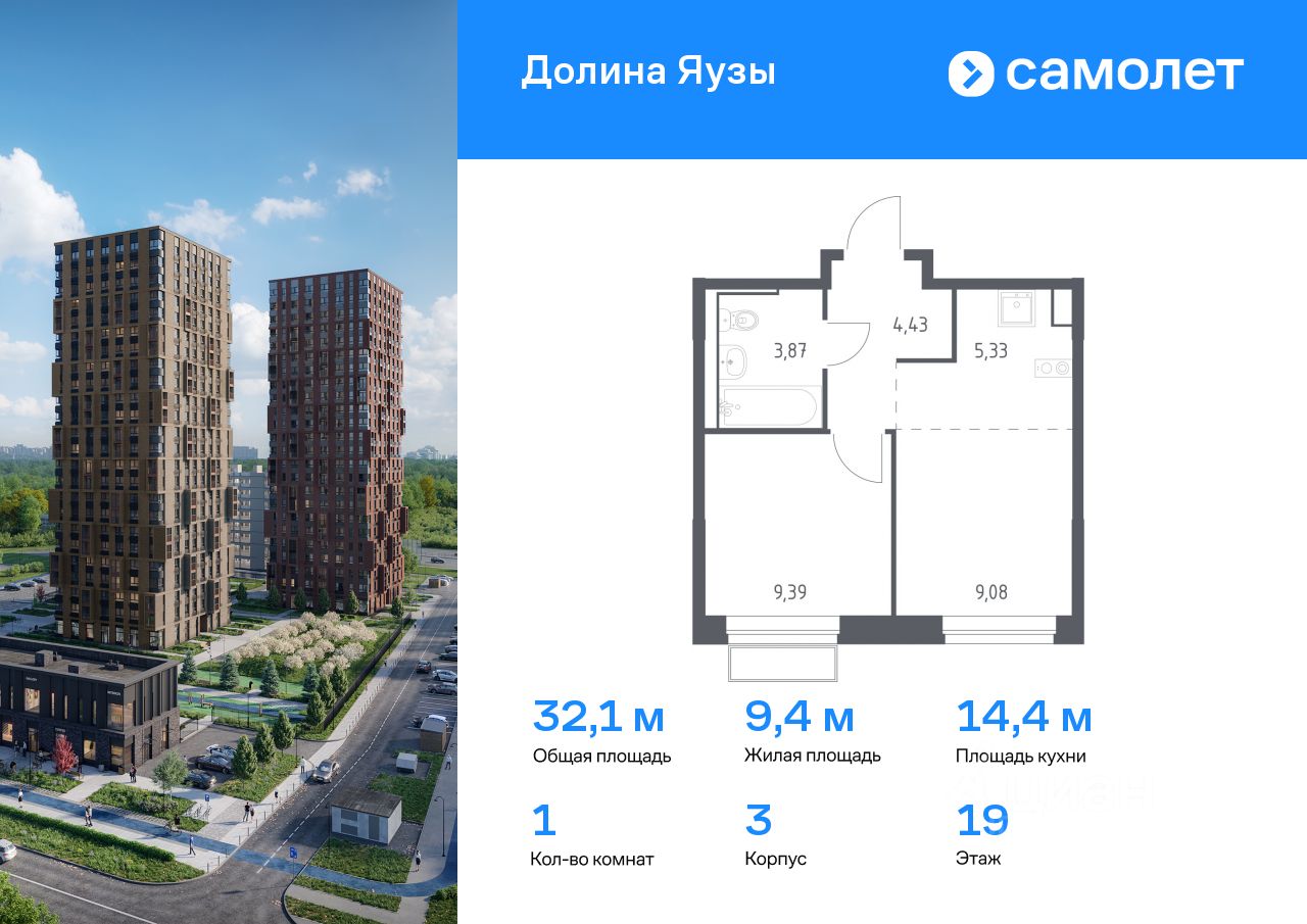 Предлагается 1-комнатная квартира комфорт-класса 32,1 кв.м в корпусе 3 на 19 этаже, в ЖК ''Долина Яузы'' Квартира с предчистовой отделкой. Доступность дополнительных опций уточняйте у застройщика.