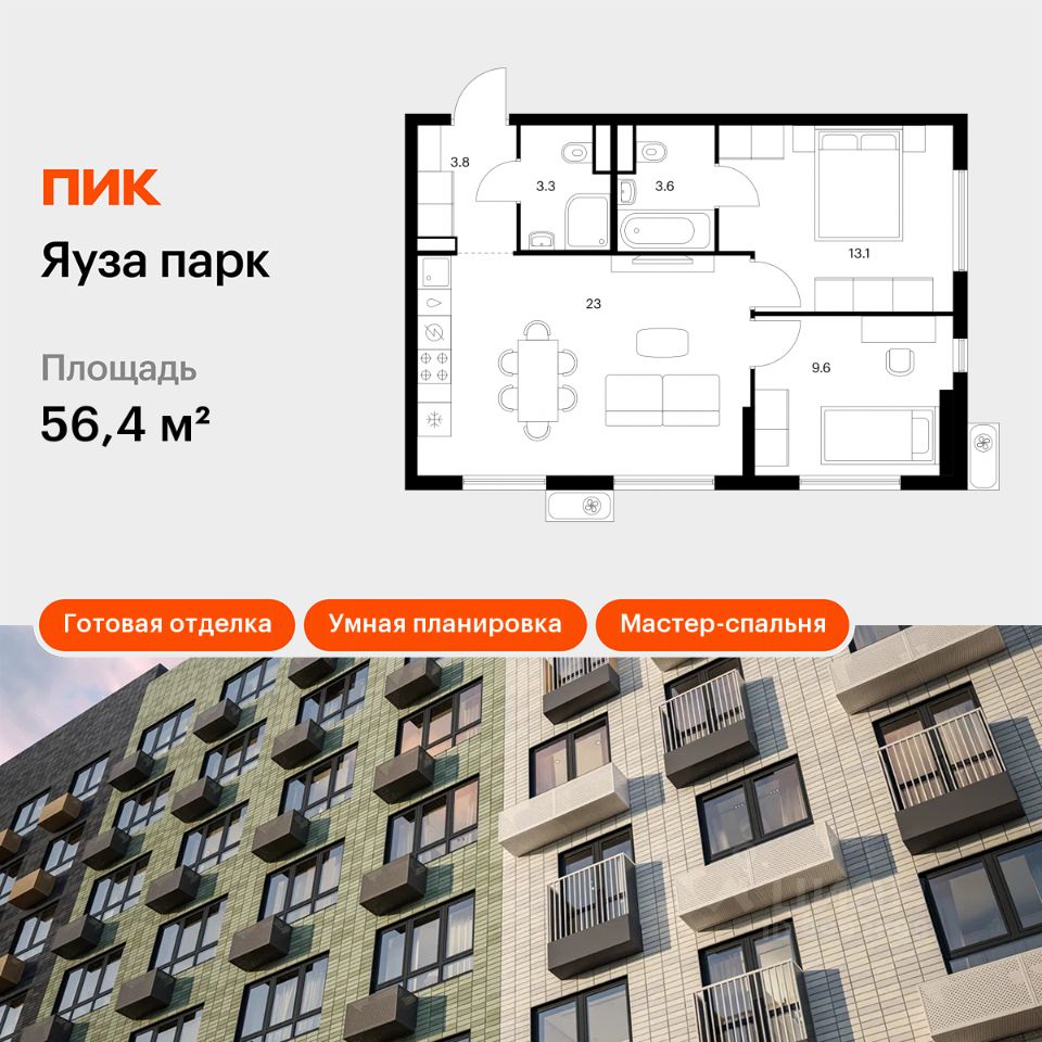 Продаётся 2-комн. квартира площадью 56,4 кв.м на 20 этаже 25 этажного дома (Корпус 11, Секция 1) проекта ПИК Яуза парк. Светлый просторный подъезд на уровне земли, функциональная планировка, большие окна, c отделкой.
