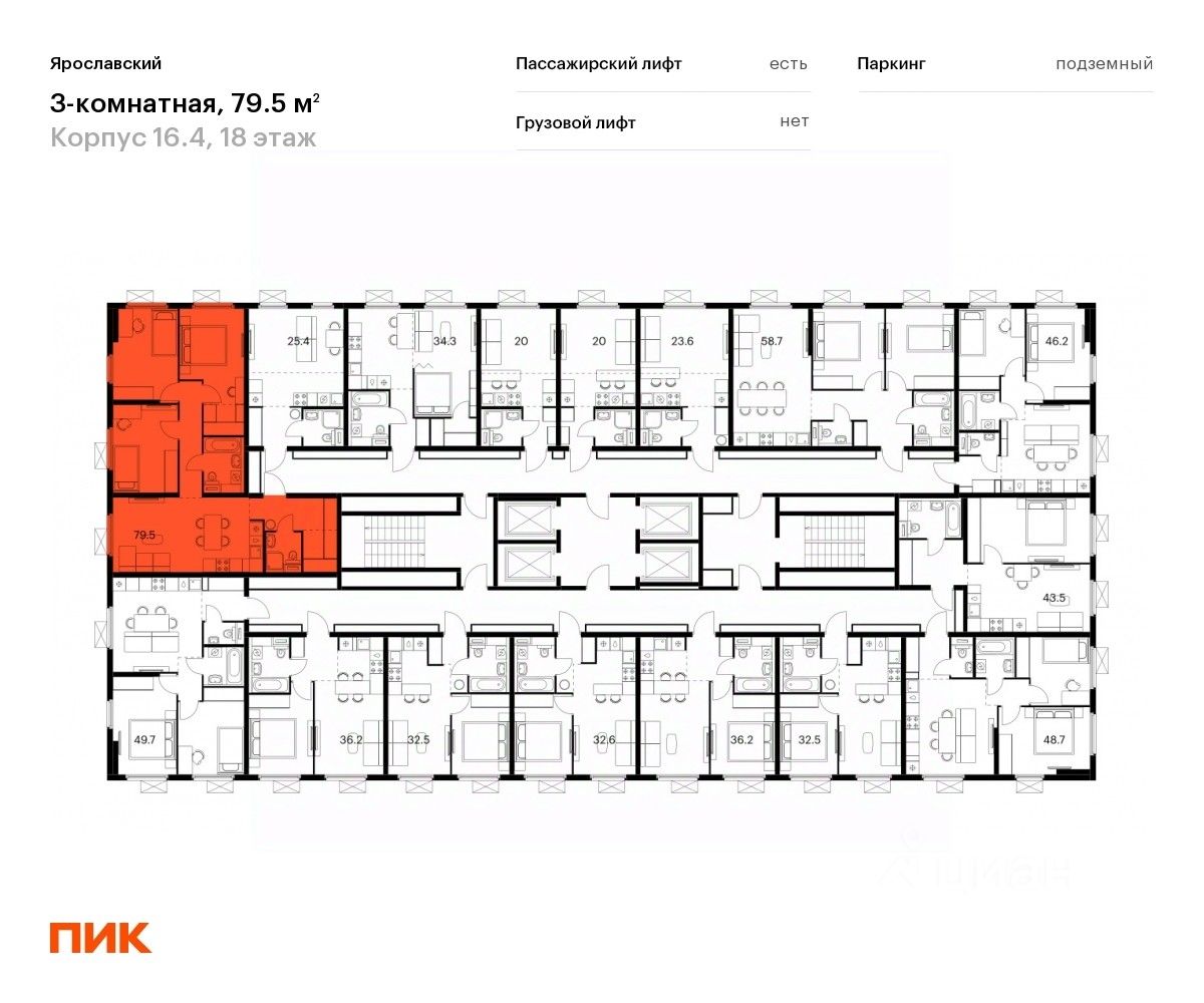 Продаётся 3-комн. квартира площадью 79,5 кв.м на 18 этаже 25 этажного дома (Корпус 16.4, Секция 4) проекта ПИК Ярославский. Светлый просторный подъезд на уровне земли, функциональная планировка, большие окна, c отделкой.