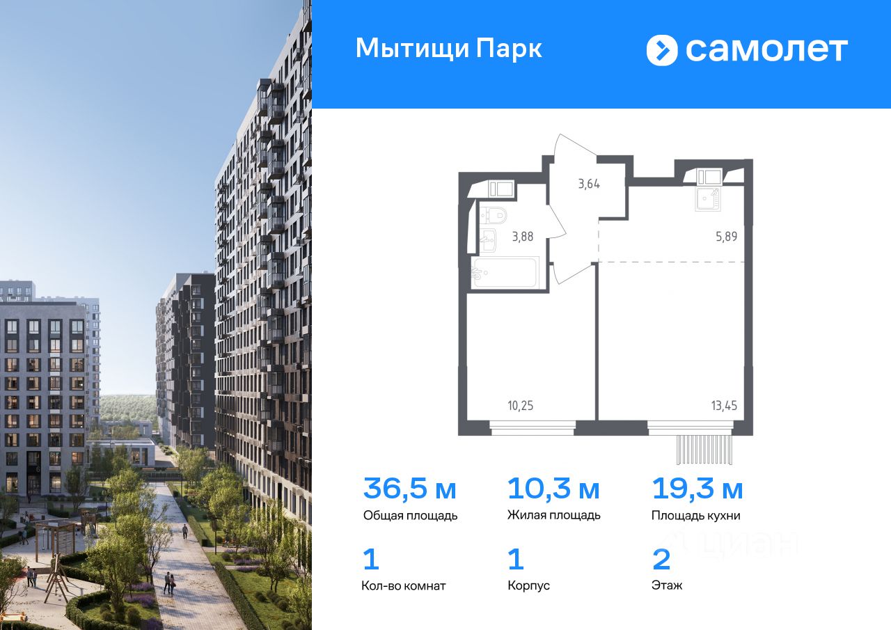 Предлагается 1-комнатная квартира комфорт-класса 36,5 кв.м в корпусе 1 на 2 этаже, в ЖК ''Мытищи Парк''