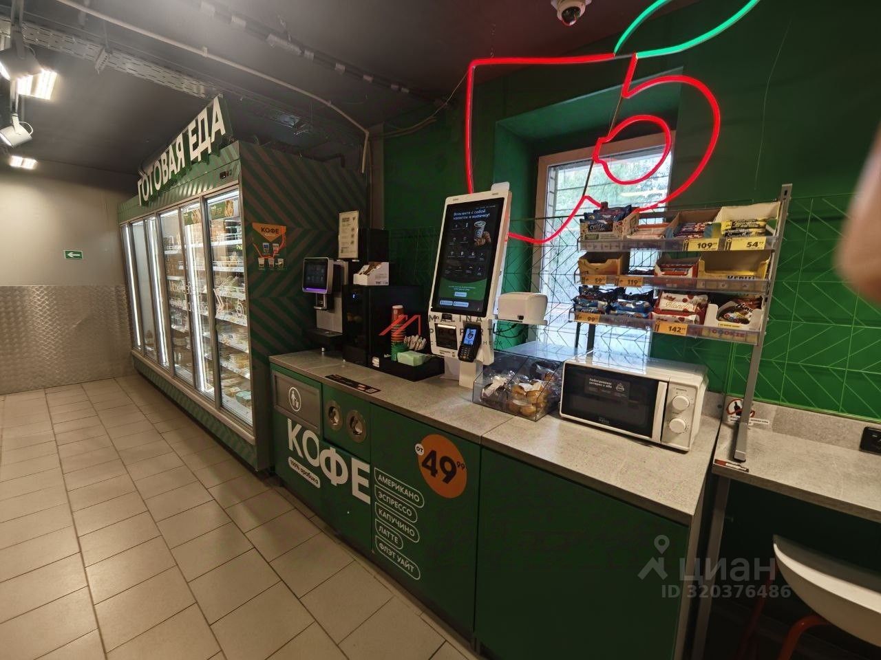 Помещение располагается на первой линии. Рядом остановка общественного транспорта. Большой спальный район.