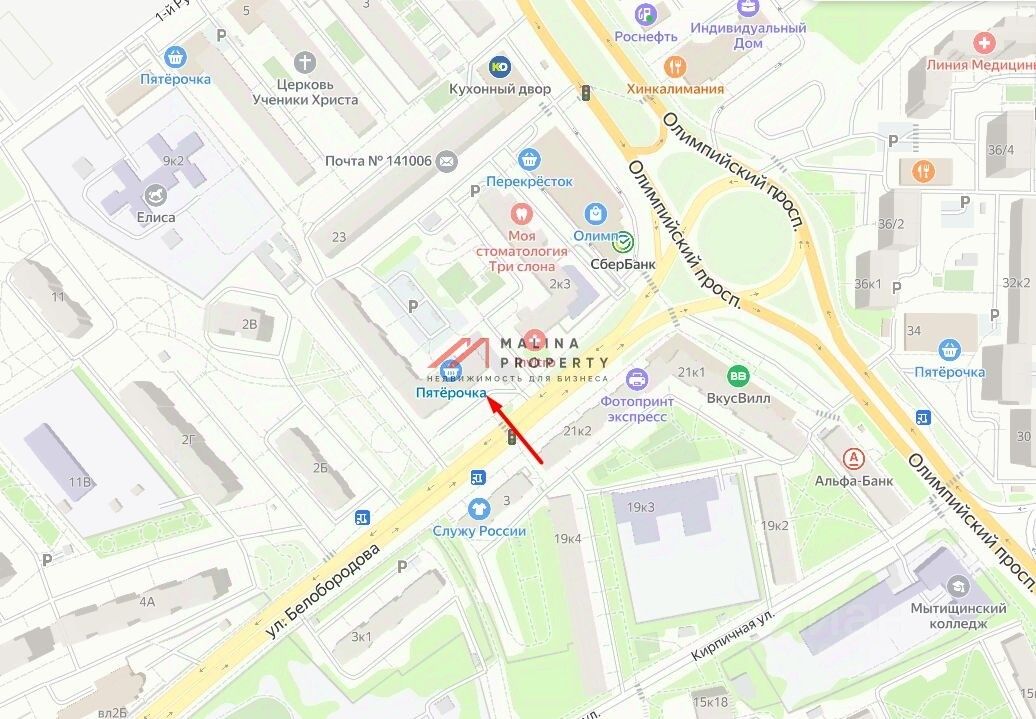 Продажа торгового помещения 442,9 м2 с арендатором супермаркет ''Пятёрочка'' по адресу г. Мытищи, ул. Белобородова, д.2 корпус 2.