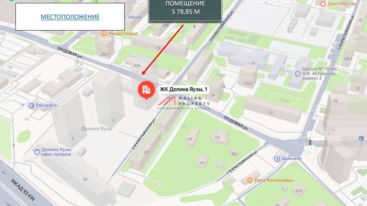 Продажа торгового помещения 78,85 м2 в новом ЖК ''Долина Яузы'', ул. Трудовая, д.29 (20 минут транспортом от метро Медведково). 1 линия домов.