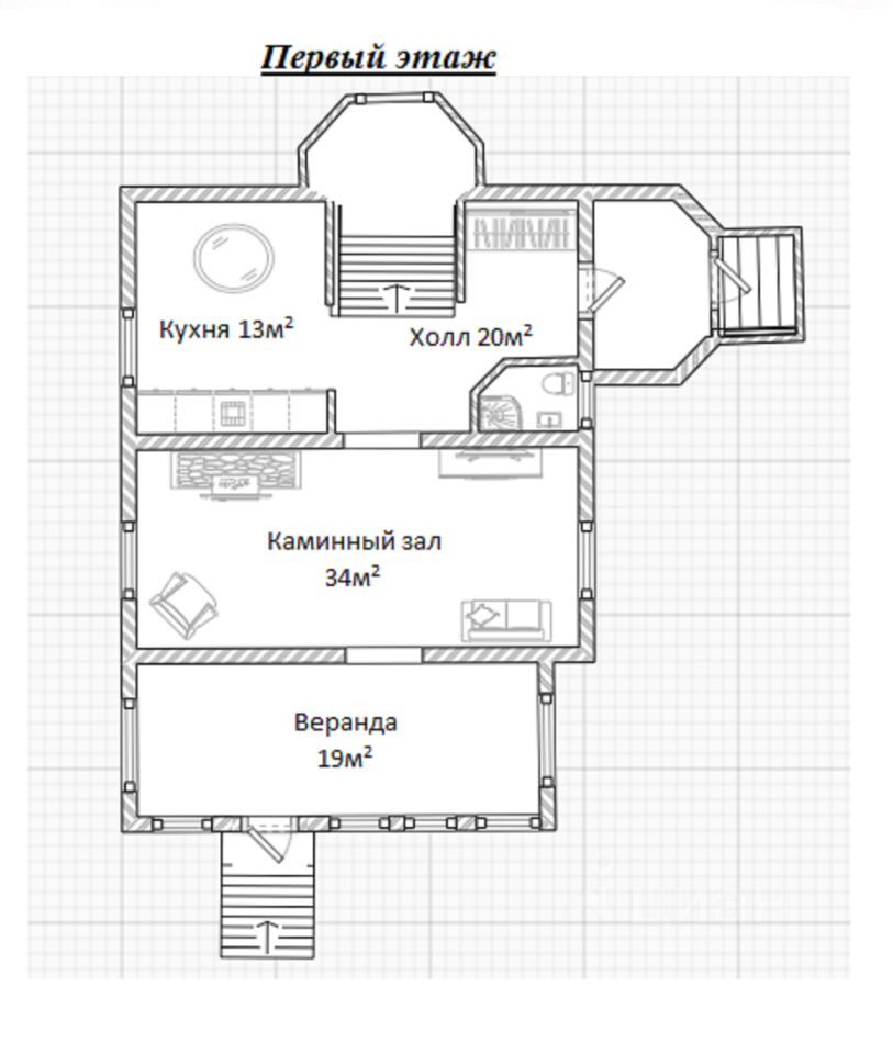 Функциональная планировка: - на первом этаже прихожая, кухня-столовая, санузел с душевой, каминный зал с итальянским действующим камином и выходом на светлую остекленную веранду, где можно обустроить зимний сад. Веранда имеет отдельный выход на участок.
