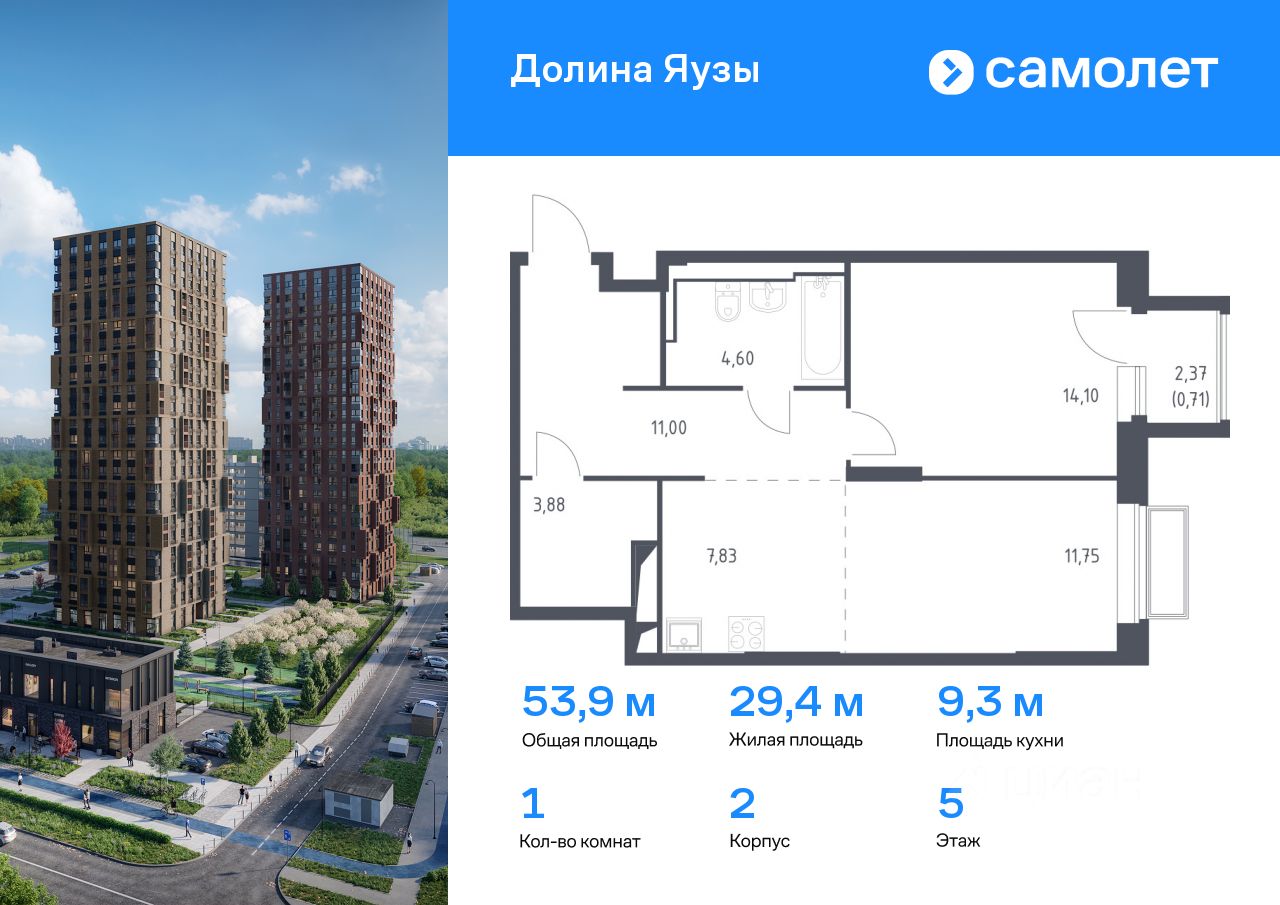 Предлагается 1-комнатная квартира комфорт-класса 53,87 кв.м в корпусе 2 на 5 этаже, в ЖК ''Долина Яузы'' Квартира с чистовой отделкой. Доступность дополнительных опций уточняйте у застройщика.