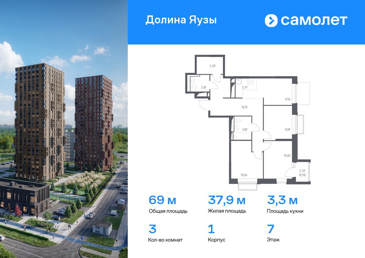 Предлагается 3-комнатная квартира комфорт-класса 68,95 кв.м в корпусе 1 на 7 этаже, в ЖК ''Долина Яузы'' Квартира с чистовой отделкой. Доступность дополнительных опций уточняйте у застройщика.