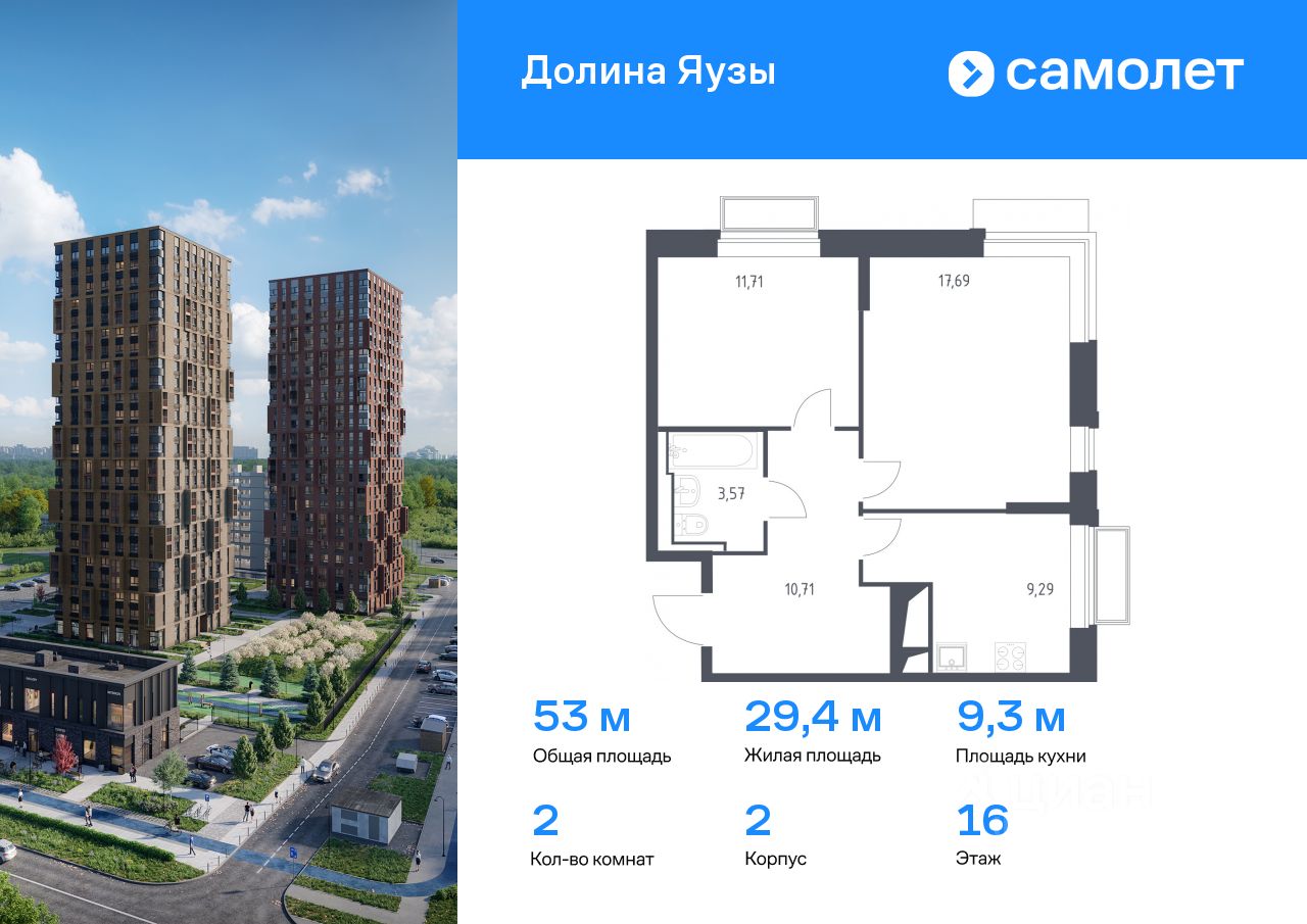 Предлагается 2-комнатная квартира комфорт-класса 52,97 кв.м в корпусе 2 на 16 этаже, в ЖК ''Долина Яузы'' Квартира с чистовой отделкой. Доступность дополнительных опций уточняйте у застройщика.
