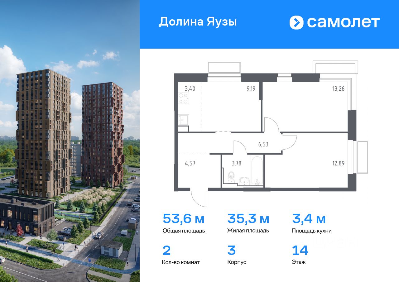 Предлагается 2-комнатная квартира комфорт-класса 53,62 кв.м в корпусе 3 на 14 этаже, в ЖК ''Долина Яузы'' Квартира с чистовой отделкой. Доступность дополнительных опций уточняйте у застройщика.