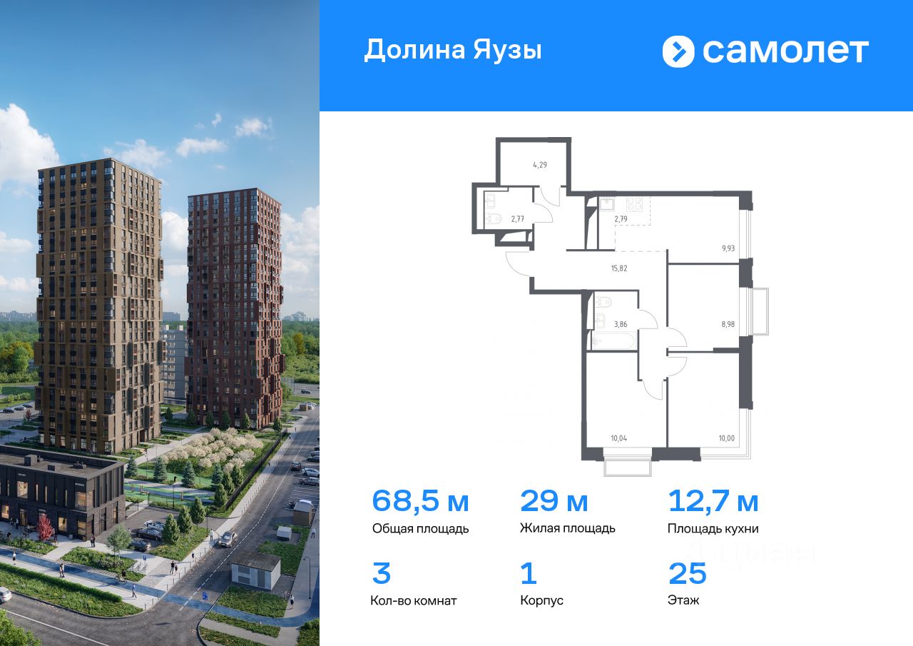 Предлагается 3-комнатная квартира комфорт-класса 68,48 кв.м в корпусе 1 на 25 этаже, в ЖК ''Долина Яузы'' Квартира с чистовой отделкой. Доступность дополнительных опций уточняйте у застройщика.
