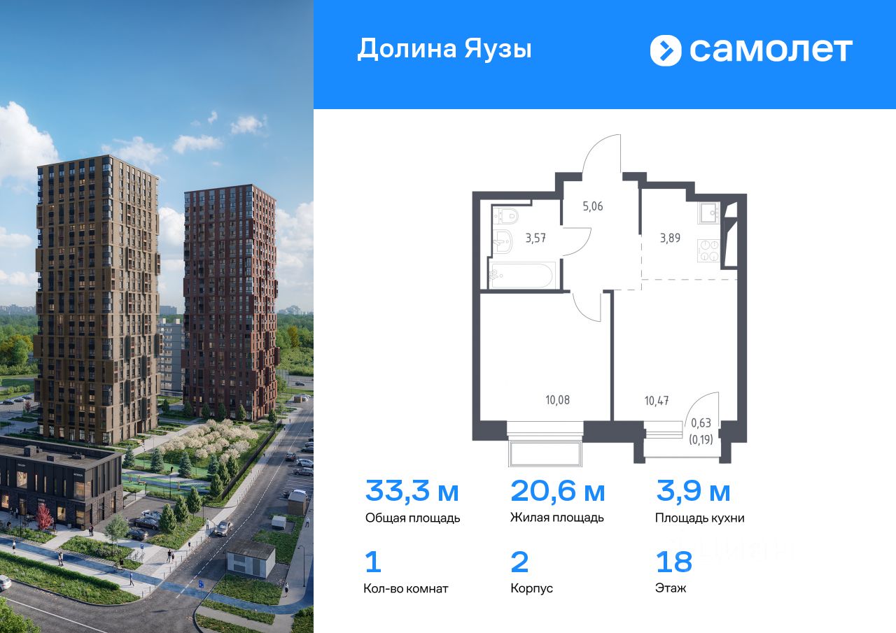 Предлагается 1-комнатная квартира комфорт-класса 33,26 кв.м в корпусе 2 на 18 этаже, в ЖК ''Долина Яузы'' Квартира с чистовой отделкой. Доступность дополнительных опций уточняйте у застройщика.