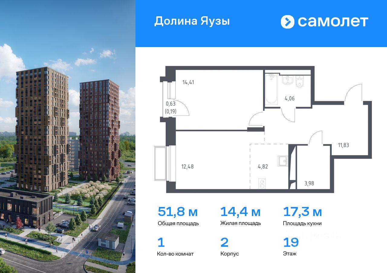 Предлагается 1-комнатная квартира комфорт-класса 51,77 кв.м в корпусе 2 на 19 этаже, в ЖК ''Долина Яузы'' Квартира с чистовой отделкой. Доступность дополнительных опций уточняйте у застройщика.