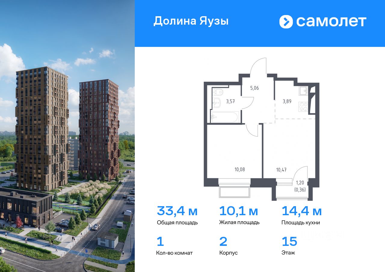 Предлагается 1-комнатная квартира комфорт-класса 33,43 кв.м в корпусе 2 на 15 этаже, в ЖК ''Долина Яузы'' Квартира с чистовой отделкой. Доступность дополнительных опций уточняйте у застройщика.