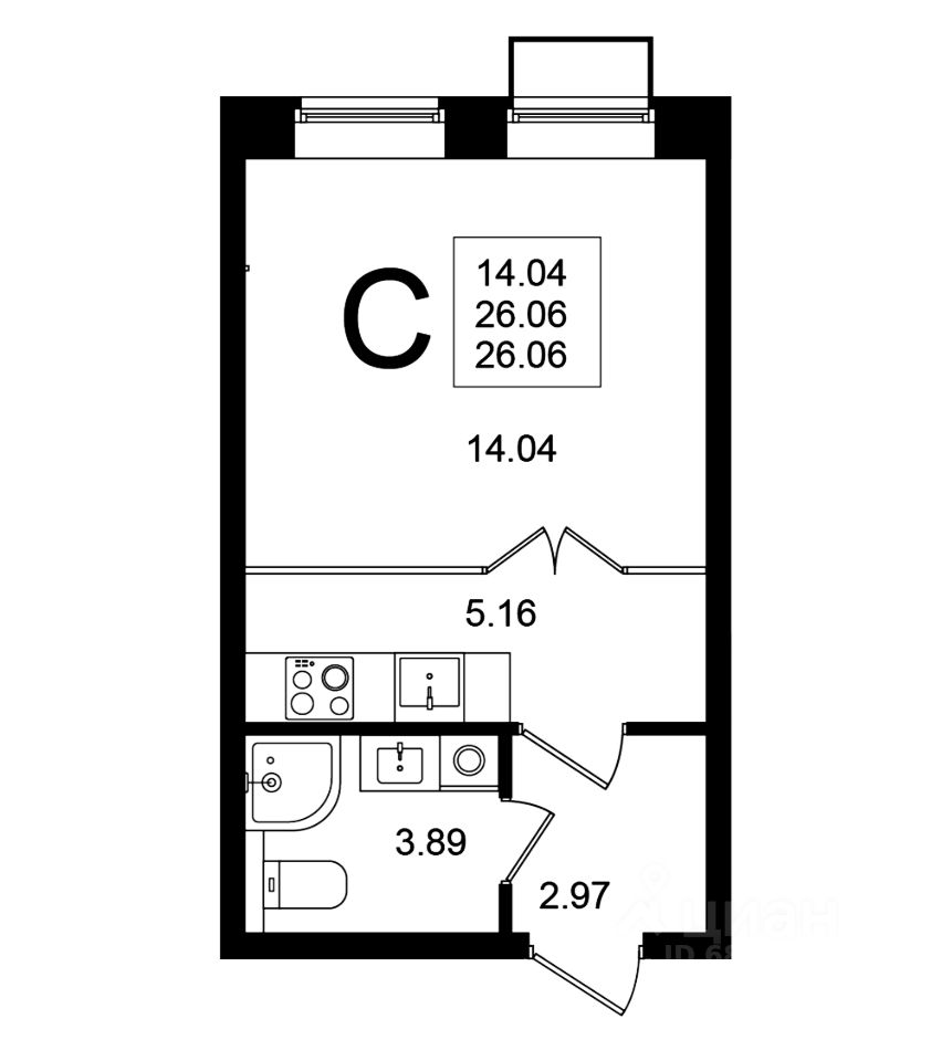 Продаётся студия в строящемся доме (Корпус 7), срок сдачи: 4-кв. 2025, общей площадью 26.06 кв.м., на 4 этаже.