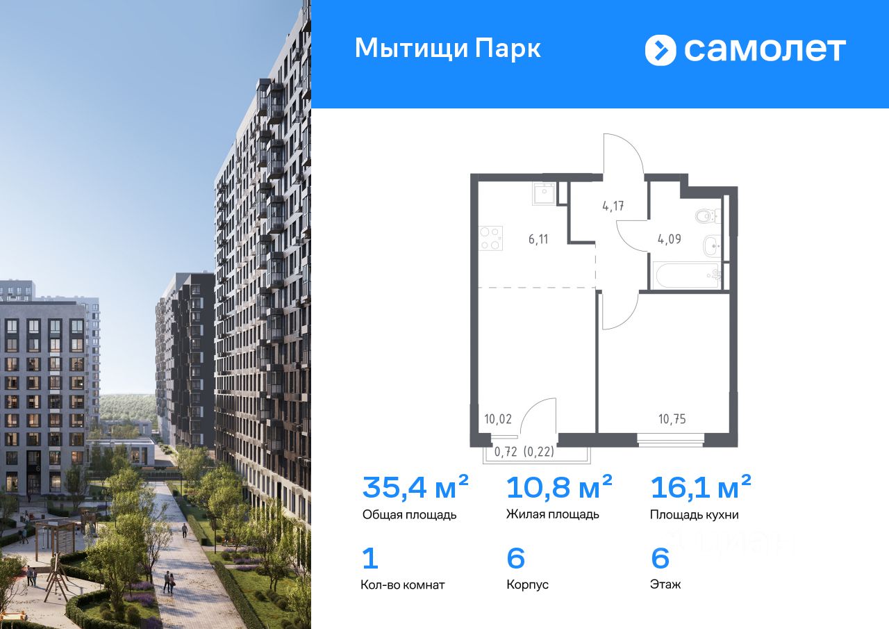 Предлагается 1-комнатная квартира комфорт-класса 35,36 кв.м в корпусе 6 на 6 этаже, в ЖК ''Мытищи Парк''