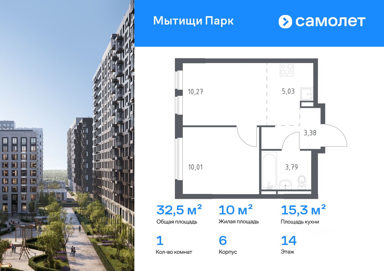 Предлагается 1-комнатная квартира комфорт-класса 32,48 кв.м в корпусе 6 на 14 этаже, в ЖК ''Мытищи Парк''