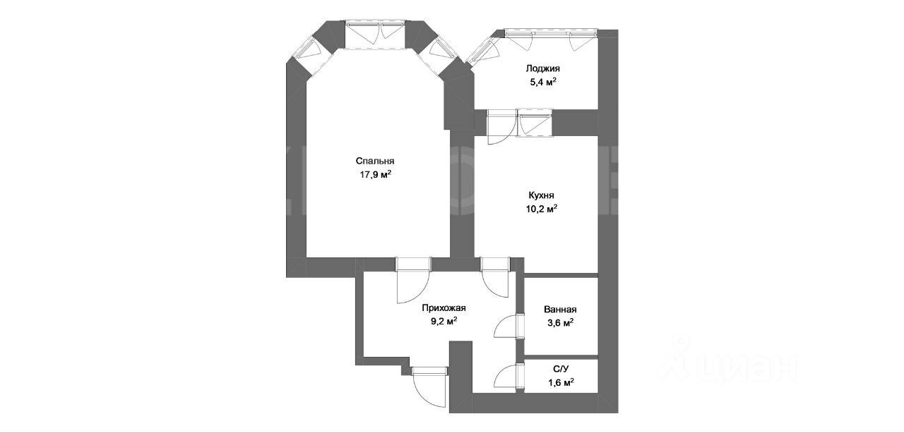 1-комнатная квартира площадью почти 50 кв.м в 500 шагах от станции с окнами в зелёный двор.
