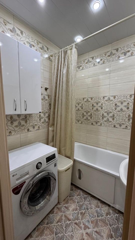 Сдаётся просторная, солнечная 3-х комнатная квартира с современным ремонтом. Встроенная кухня со всей необходимой техникой: варочная панель, духовой шкаф, вытяжка, посудомоечная машина, микроволновая печь, холодильник, обеденный стол, стулья. Полностью укомплектована мебелью, раскладные диваны, двуспальная кровать, полутора спальная кровать, комод, туалетный столик, шкафы для одежды, телевизор, кондиционеры в каждой комнате, шумоизоляционная металлическая входная дверь, домофон, консьерж. Раздельный санузел с ванной, в туалете тумба с раковиной, импортная сантехника, стиральная машина. Новый дом, чистый подъезд, современная входная группа. Вся инфраструктура внутри микрорайона: детский сад, школа, аптеки, магазины, кафе, пекарни, остановка общественного транспорта.