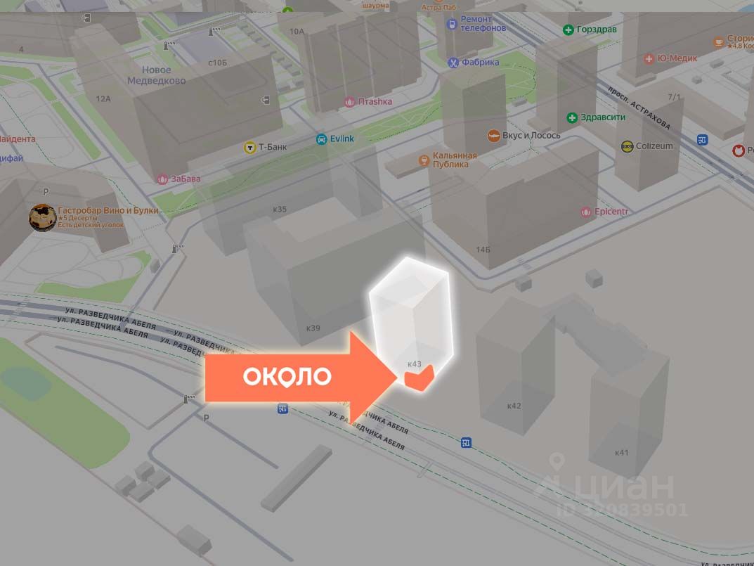 Торговое помещение находится в корпусе 43, корпус введен в эксплуатацию. Дом находится на постоянном трафике за счет расположения рядом с многоквартирными домами и на трафике от нескольких остановок транспорта.