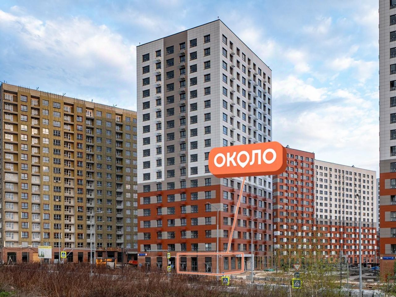 Угловое помещение расположено в центре крупного жилого комплекса. 41 корпус кружного ЖК сданы и насчитывают 8.277 квартир, в процессе стройки: к. 35 - 406 квартир к. 39-43 - 876 квартир