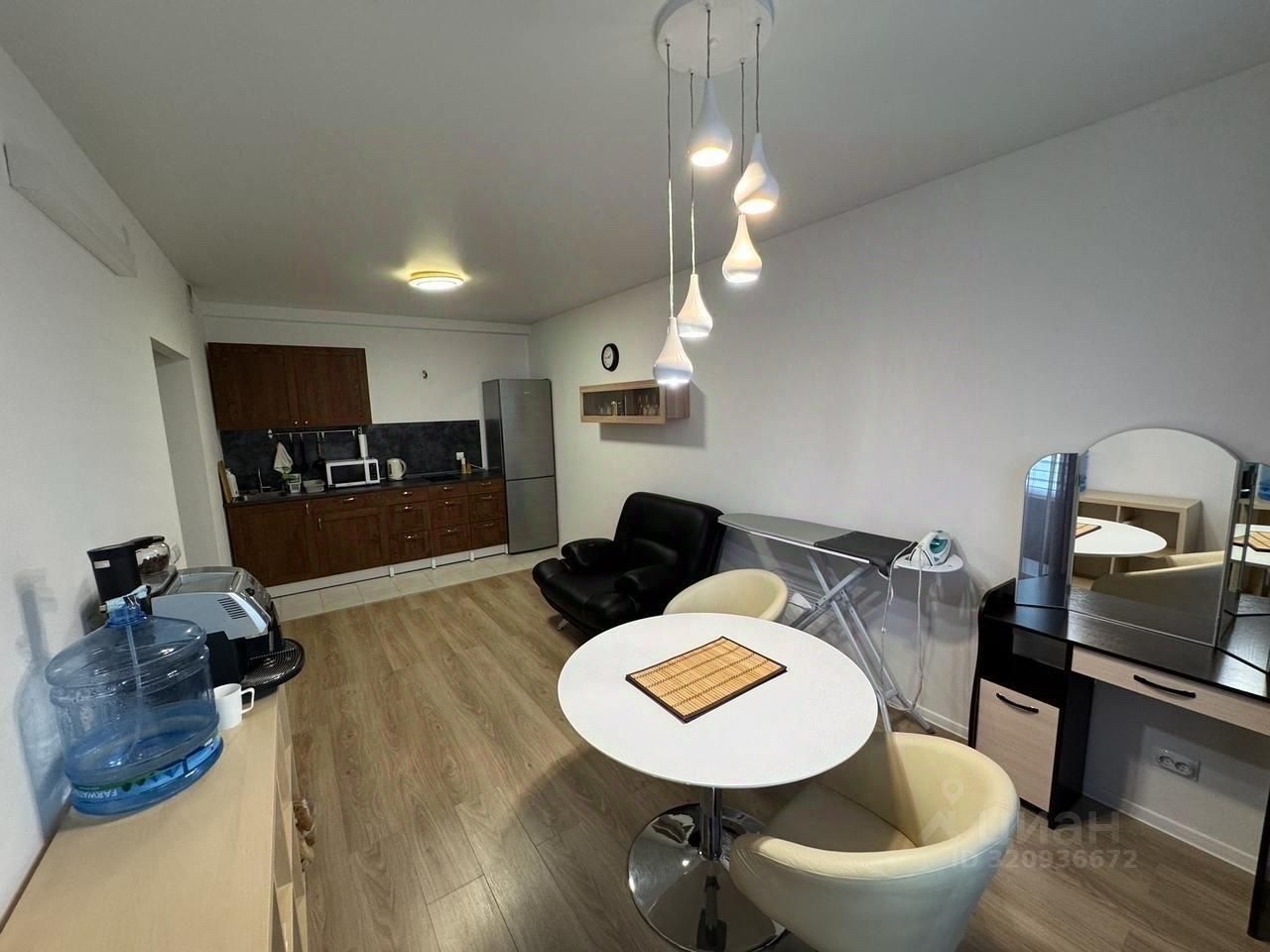 В квартире есть вся необходимая мебель, а также современная техника: холодильник с морозильной камерой, стиральная машина, микроволновая печь, электрический чайник, варочная панель, утюг с гладильной доской, сушилка для вещей, двуспальная кровать с отсеками для хранения, раскладное кожаное кресло в гостиной, напольная вешалка в спальне, шкаф для хранения одежды в спальне и в прихожей, обеденный стол, письменный стол, тумбочка с зеркалом в гостиной и зеркало в каждой туалетной комнате.