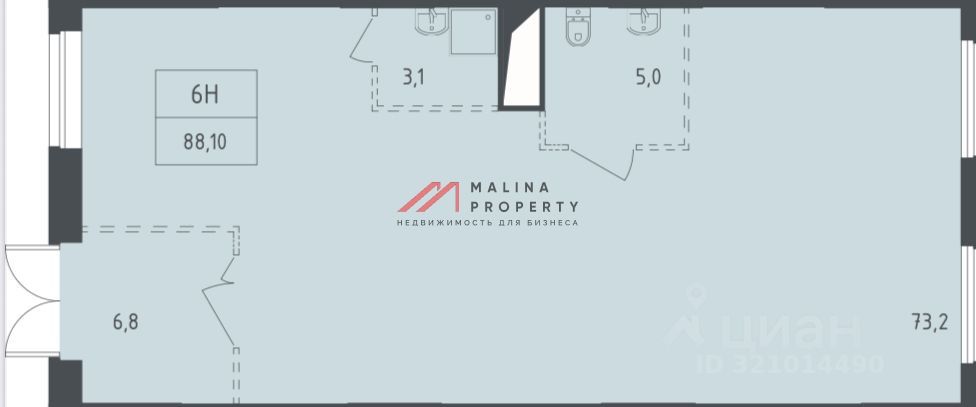 Помещение 88 м2 располагается на 1 этаже, открытая планировка, отдельный вход с фасада, высота потолка 4 м, витринные окна. Помещение в бетоне. Рядом работает супермаркет ''Пятёрочка''.