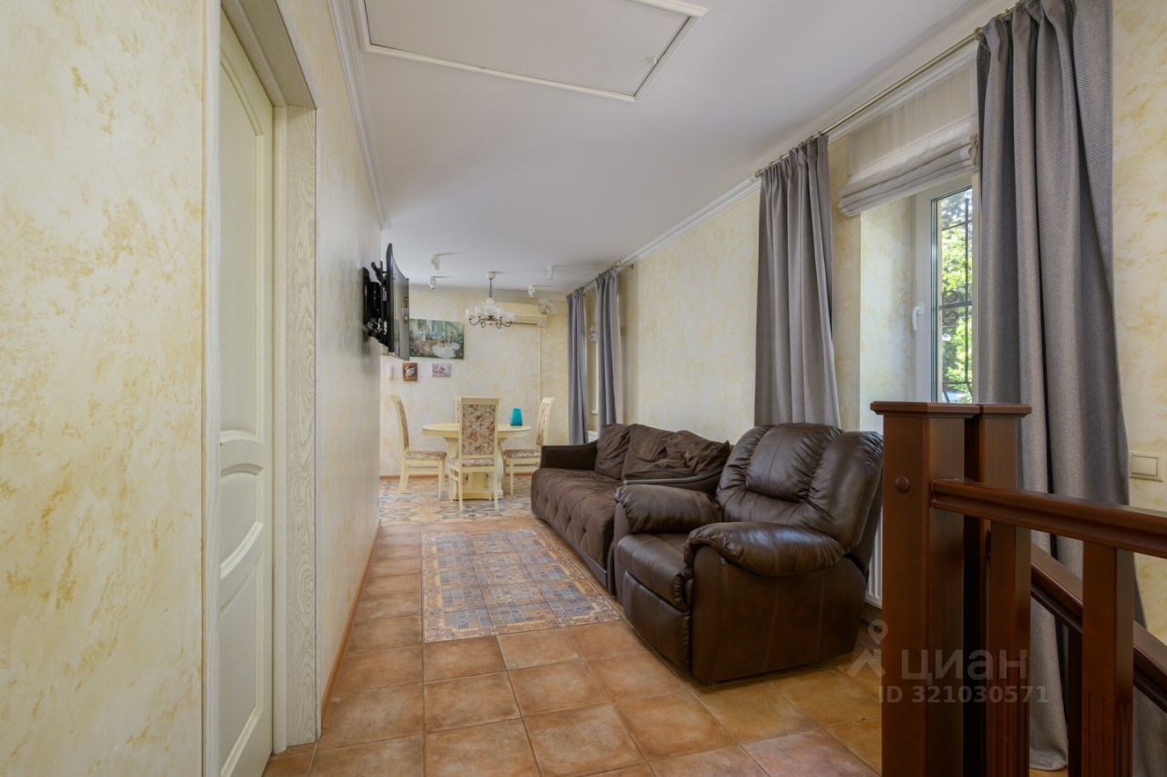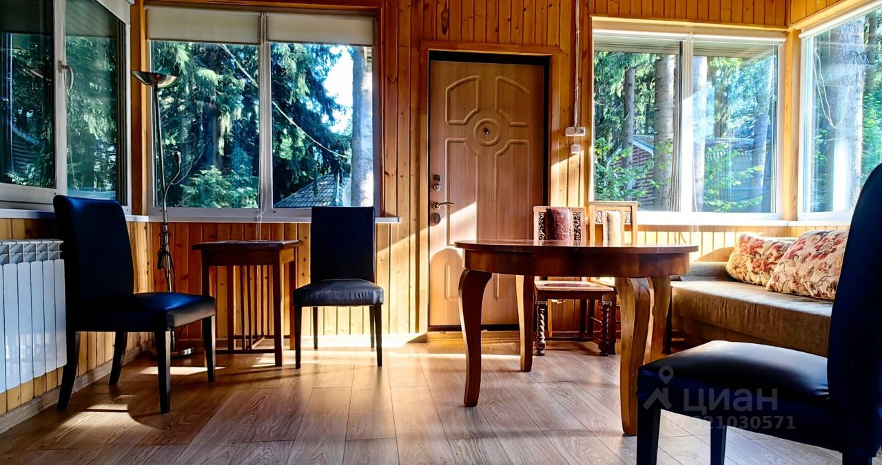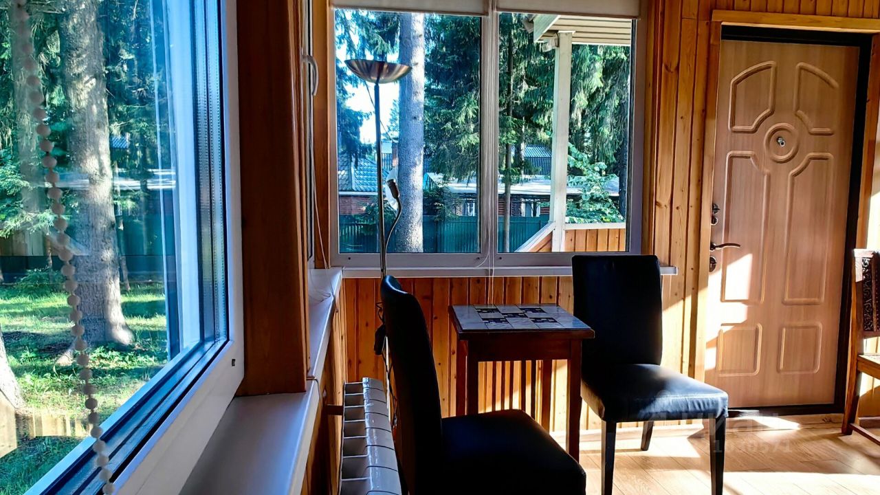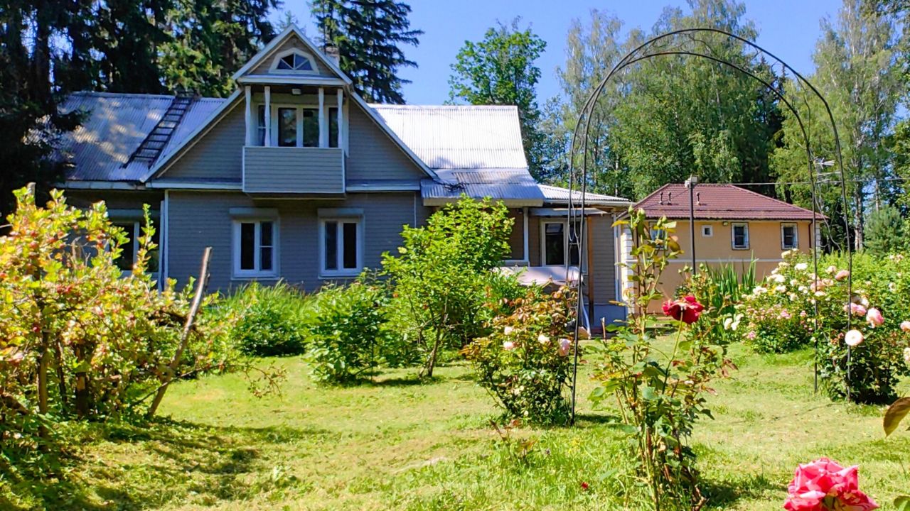 А так же 2-х этажный, очень крепкий дом из бруса 1958 года постройки площадью 130 кв. м, генеральская дача прежней эпохи. На первом этаже: коридор, кухня, гостиная с русской печью, две комнаты, уютная веранда с широким окнами на три стороны и вторым выходом в сад, с/у с душевой, котельная. На 2-м этаже этаже две спальни, одна из них с балконом и шикарным видом на просторный живописный участок, кабинет-библиотека, с/у с душем.