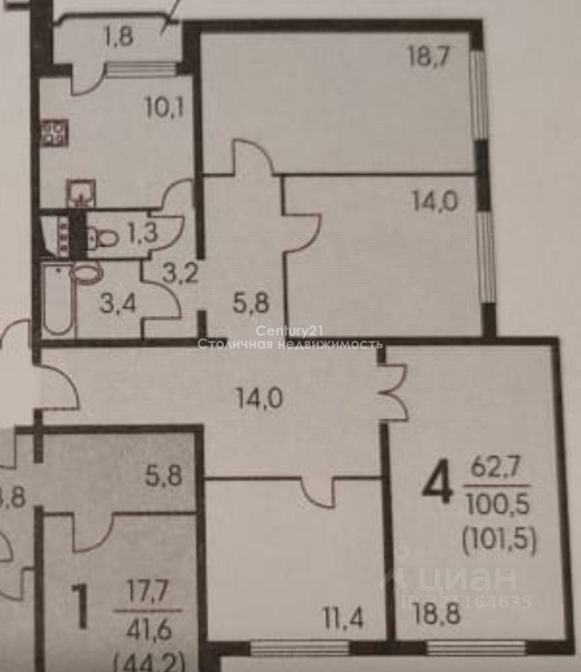 Арт. 114762535 Вашему вниманию представляется ПРОСТОРНАЯ 4-х комнатная квартира площадью 101,5 м². Окна квартиры выходят на три стороны дома, благодаря этому она очень СВЕТЛАЯ. Квартира расположена на 23 этаже, имеет прекрасный вид из окон. В подъезде три лифта для вашего удобства. Просторная кухня 10,1 м² с выходом на балкон. ЧЕТЫРЕ красивые ИЗОЛИРОВАННЫЕ комнаты 18,7 м², 14 м², 18,8 м², 11,4 м² Кухня делалась на заказ, вся техника: духовка, варочная панель, вытяжка, холодильник остается. Прихожая обустроена шкафами и комодами. Обустроенная ванная комната. В подъезде консьерж. Много парковочные мест на улице. В шаговой доступности ТЦ Июнь, ТЦ Daily, пункты выдачи, аптеки, сетевые магазины, кафе. Хорошая транспортная доступностью. Автобусы до метро Медведково. Рядом с домом построен новый детский сад, рядом несколько школ. Квартира без обременений. Альтернативная сделка. Один взрослый собственник. Показ по согласованию.