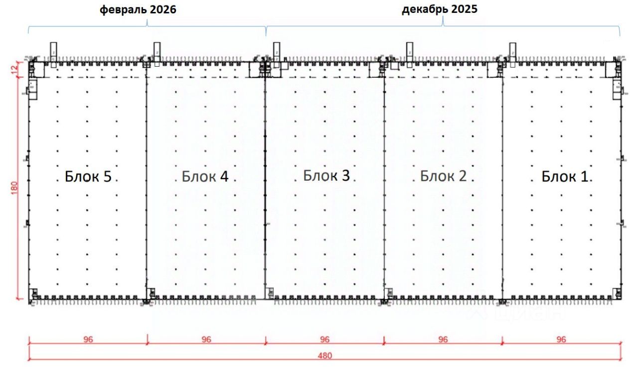 Технические характеристики: Нагрузка на пол: 9 т/кв. м Количество ворот: 118 шт. (На пандусе, Докового типа) Температурный режим: Отапливаемый склад Мощность: 1200 кВт Высота потолка: 12.2 м Пол: Бетон-Антипыль Строится, доступ с 01.02.2026