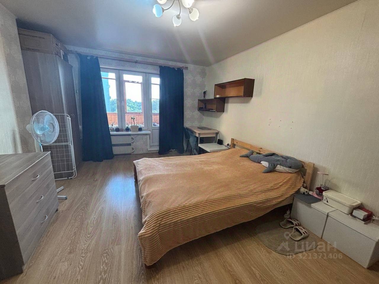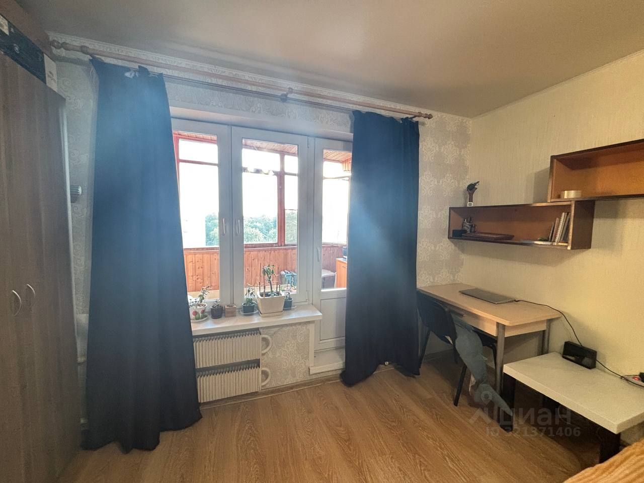Просторная застекленная лоджия. Установлены окна ПВХ, в комнате и коридоре ламинат.