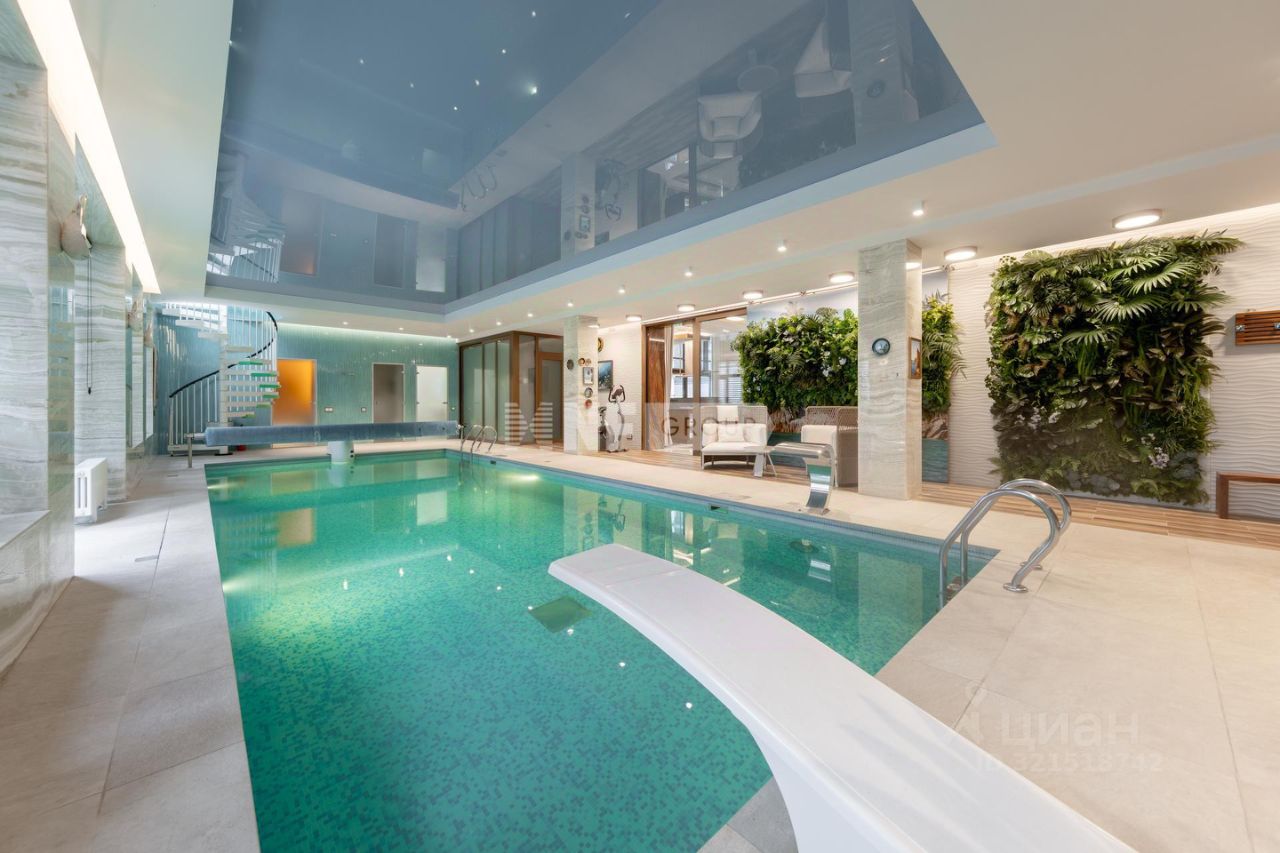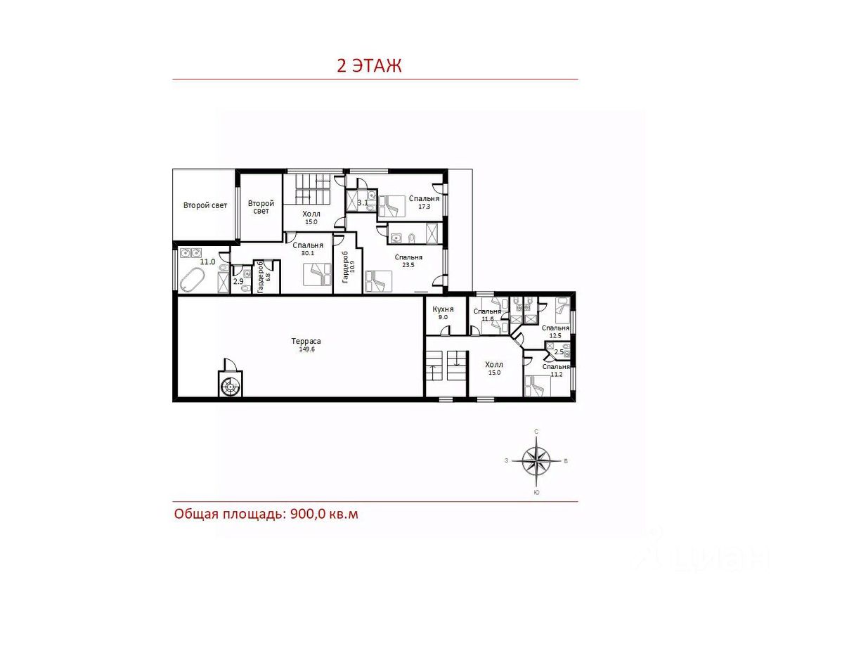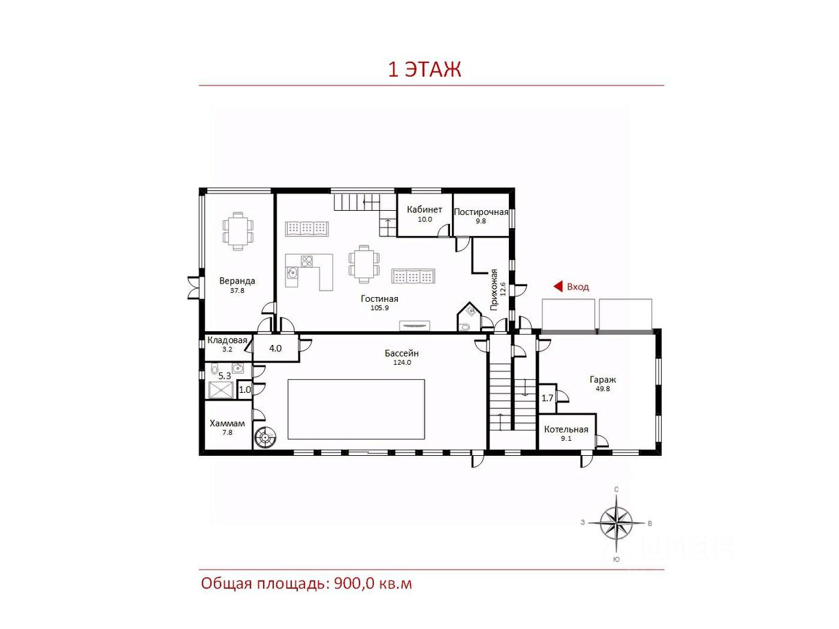 Планировка основного дома: Цокольный этаж: спортзал, зона сезонного хранения, котельная, станция очистки и водоподготовки воды. 1 этаж: кухня-столовая, гостиная с камином и ТВ-зоной, кабинет, гостевой санузел, бассейн 10,5 на 4,15 метров, хаммам, сауна, постирочная, гараж на 2 автомобиля. 2 этаж: хозяйский блок: мастер спальня с 2 гардеробными и ванной, 2 детский спальни с санузлами и гардеробными. Гостевой блок: 3 спальни с индивидуальными санузлами, гостиная, кухня.