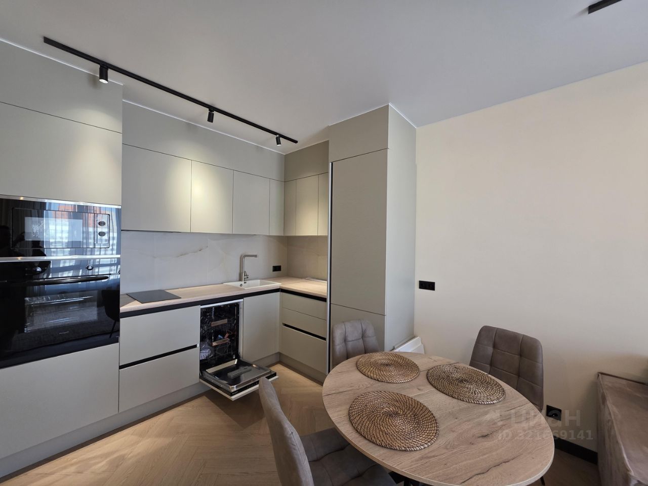 Предлагается вашему вниманию просторная евродвушка в ЖК ''Кит''. Общая площадь 40м2. Квартира после свежего ремонта. Кухня-гостиная: зона кухни: встроенный кухонный гарнитур под единой столешницей, встроенная варочная панель стеклокерамика, вытяжка, встроенный духовой шкаф, СВЧ. Посудомоечная машина. Встроенный холодильник. Стол обеденный (круглый), стулья. Зона гостиной: удобный раскладной диван с подушками, тумба с ящиками для хранения, ТВ ЖК. Кондиционер. Зона кухни и гостиной оснащенны вариантами освещения. Спальня: большая кровать с ящиком для хранения, матрас, большой вместительный шкаф купе с зеркалом. Кондиционер. СУС: кафель, тёплые полы, ванна, унитаз с инсталляцией, зеркало, умывальник с тумбой для хранения, шкаф с полками. Стиральная машина автомат.