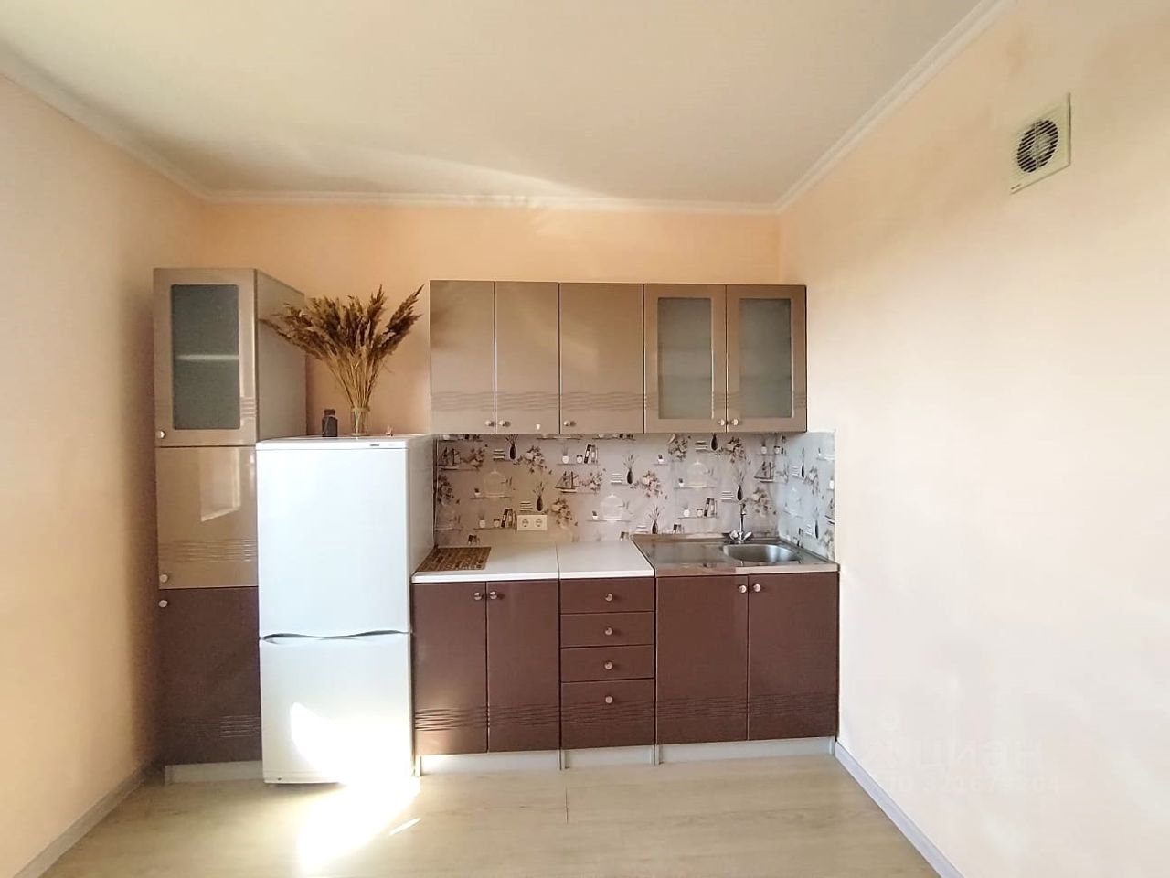 На кухни установлен кухонный гарнитур. Напольное покрытие ламинат, покрытие стен-обои под покраску.