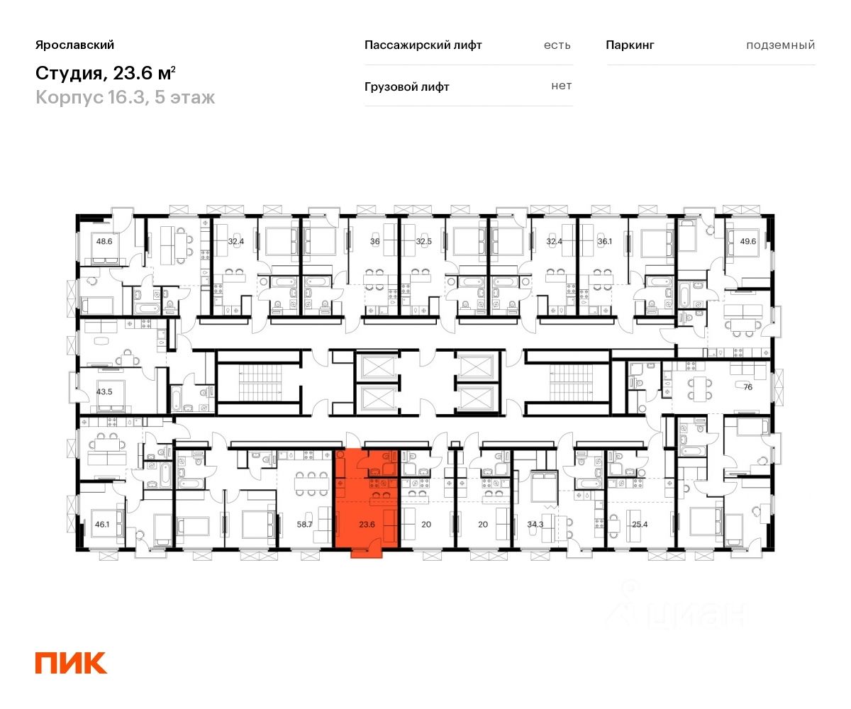 Продаётся квартира-студия площадью 23,6 кв.м на 5 этаже 25 этажного дома (Корпус 16.3, Секция 3) проекта ПИК Ярославский. Светлый просторный подъезд на уровне земли, функциональная планировка, большие окна, c отделкой.