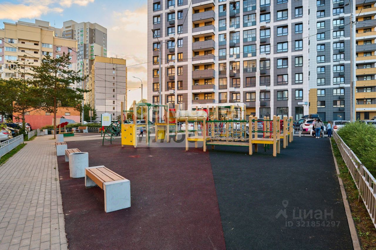 Во дворе дома находится детская площадка, которая отлично просматривается с общего балкона.