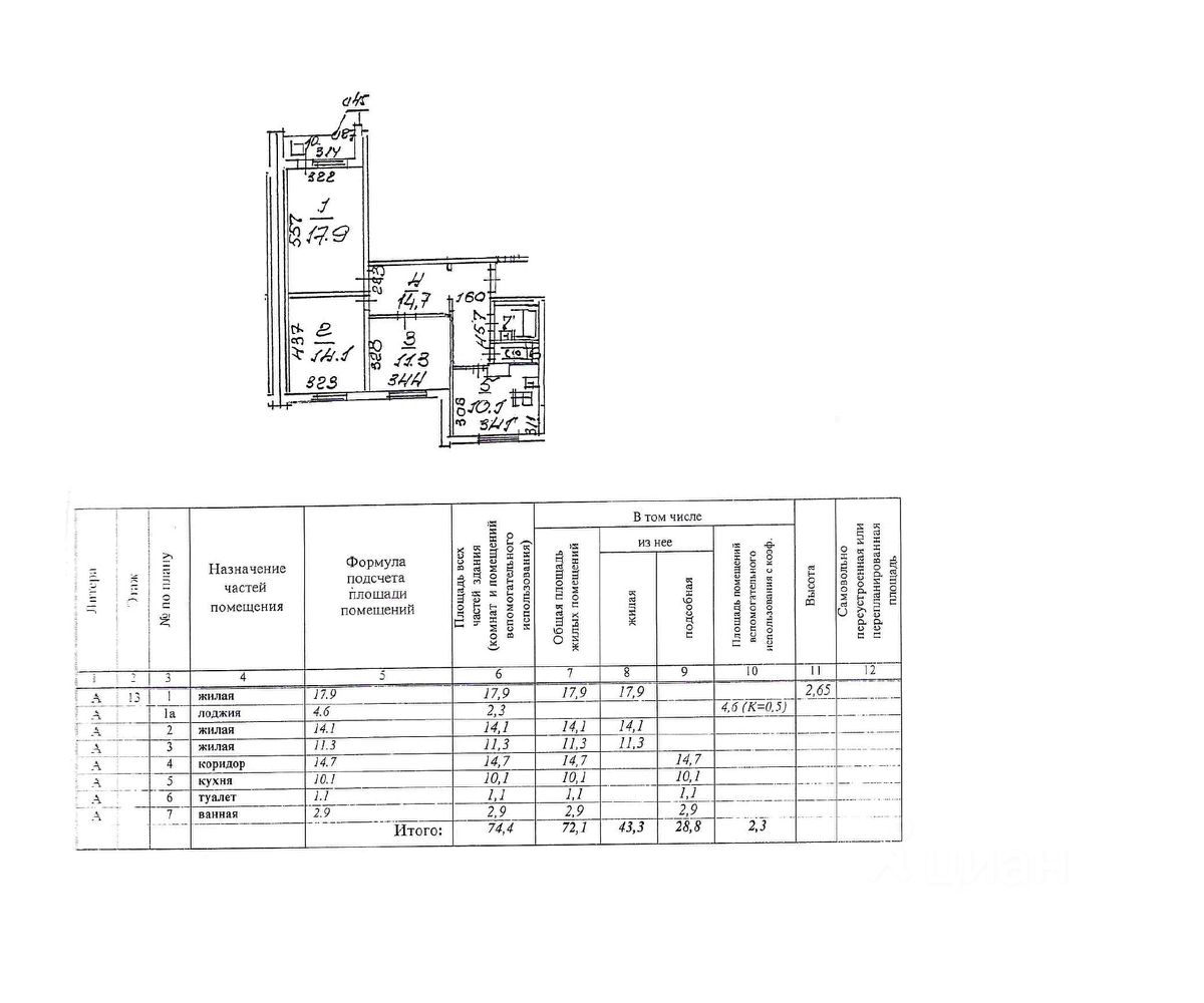 - Общая площадь 74,4 м² (без учета лоджии 72,1).