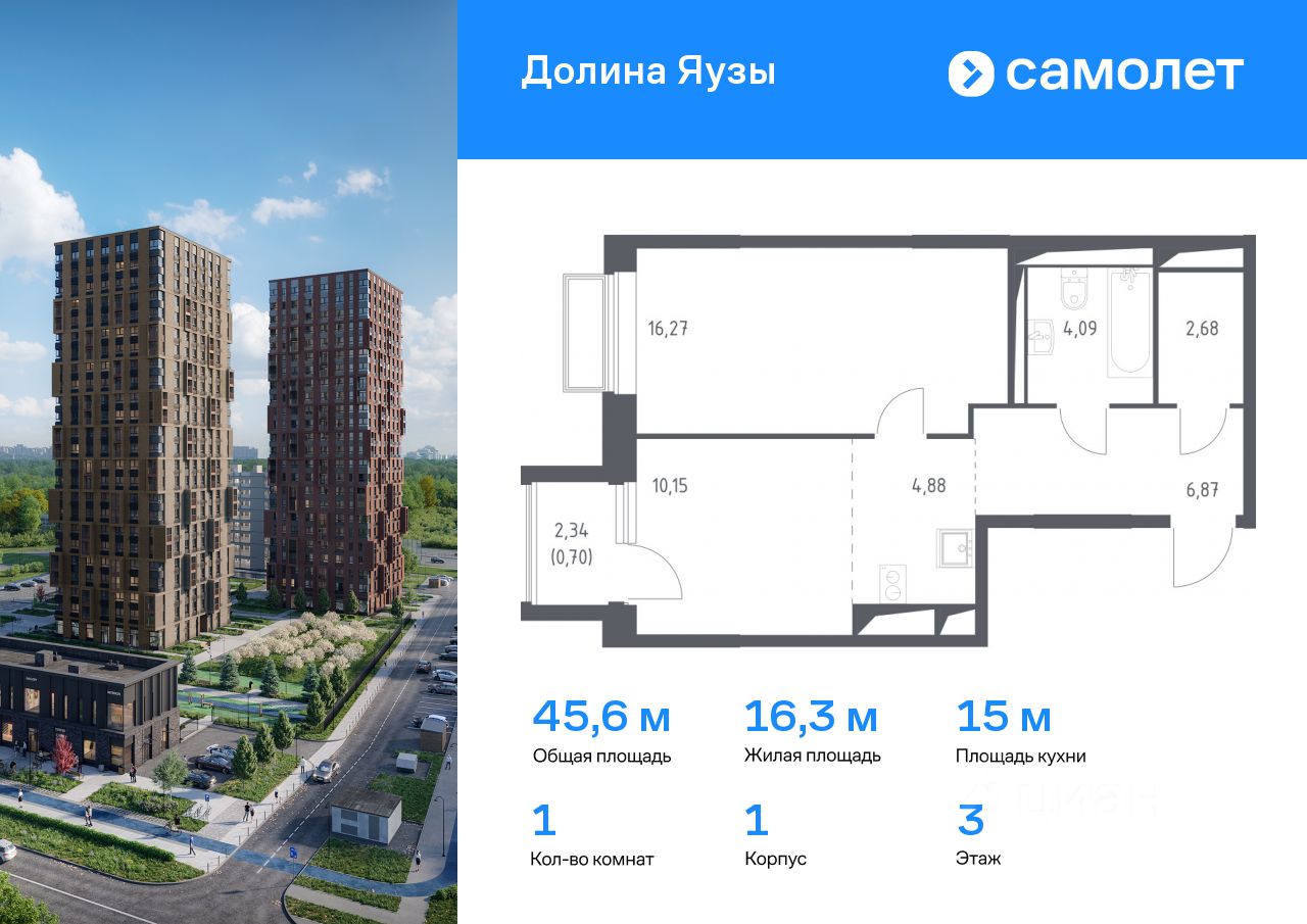 Строим кварталы для жизни с заботой о будущем. Предлагается 1-комнатная квартира комфорт-класса 45,64 кв.м в корпусе 1 на 3 этаже, в ЖК ''Долина Яузы'' Квартира с чистовой отделкой. Доступность дополнительных опций уточняйте у застройщика.