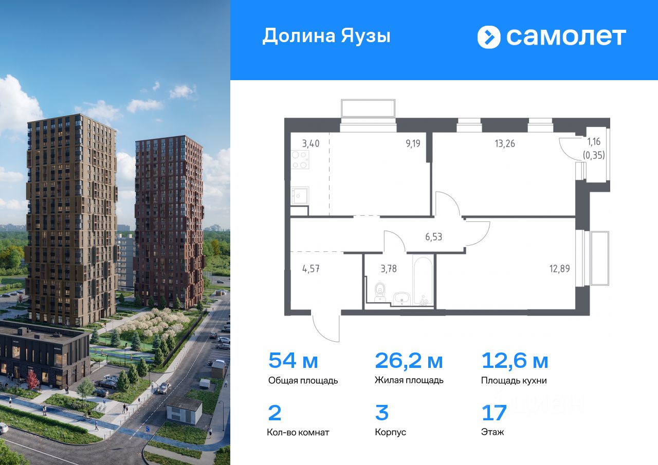 Предлагается 2-комнатная квартира комфорт-класса 53,97 кв.м в корпусе 3 на 17 этаже, в ЖК ''Долина Яузы'' Квартира с предчистовой отделкой. Доступность дополнительных опций уточняйте у застройщика.