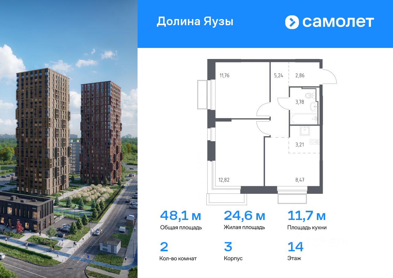 Строим кварталы для жизни с заботой о будущем. Предлагается 2-комнатная квартира комфорт-класса 48,14 кв.м в корпусе 3 на 14 этаже, в ЖК ''Долина Яузы'' Квартира с чистовой отделкой. Доступность дополнительных опций уточняйте у застройщика.