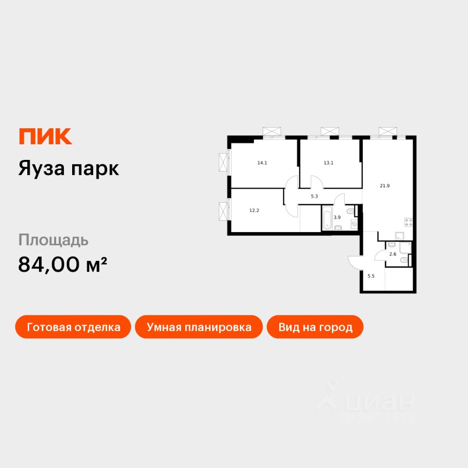 Продаётся 3-комн. квартира площадью 84 кв.м на 5 этаже 24 этажного дома (Корпус 7, Секция 1) проекта ПИК Яуза парк. Светлый просторный подъезд на уровне земли, функциональная планировка, большие окна, c отделкой.