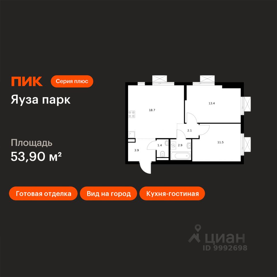 Продаётся 2-комн. квартира площадью 53,9 кв.м на 16 этаже 24 этажного дома (Корпус 7, Секция 1) проекта ПИК Яуза парк. Светлый просторный подъезд на уровне земли, функциональная планировка, большие окна, c отделкой.