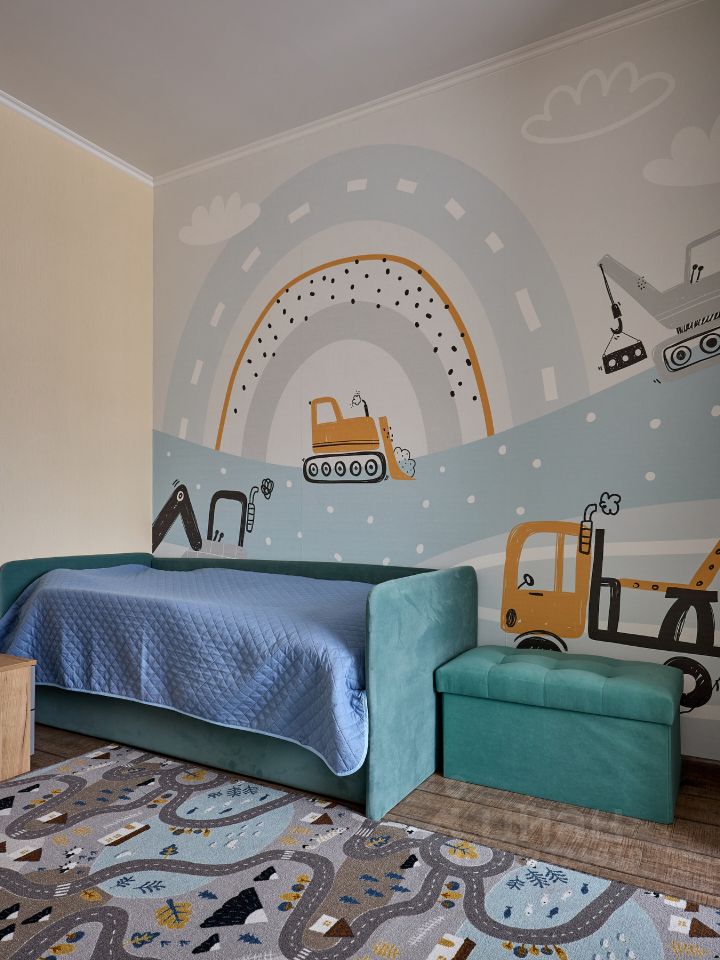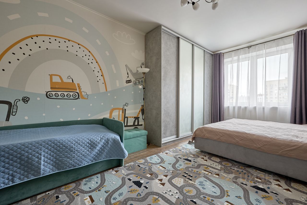 На кухне 9,1 кв.м размещен функциональный и стильный кухонный гарнитур, встроенная техника Bosch, уютный обеденный стол. Выход из кухни на утепленный балкон, который можно использовать как рабочий кабинет и зону отдыха. Кресло раскладывается и превращается в дополнительное спальное место, в нем так же удобно расположиться с чашкой чая, наблюдая за погодой с высоты 11 этажа. В комнате размещены спальная зона с 2-спальной кроватью, вместительный шкаф и детский уголок, который легко трансформировать в гостиную зону, установлен кондиционер. Санузел совмещенный, в душевую зону можно при желании разместить ванну.