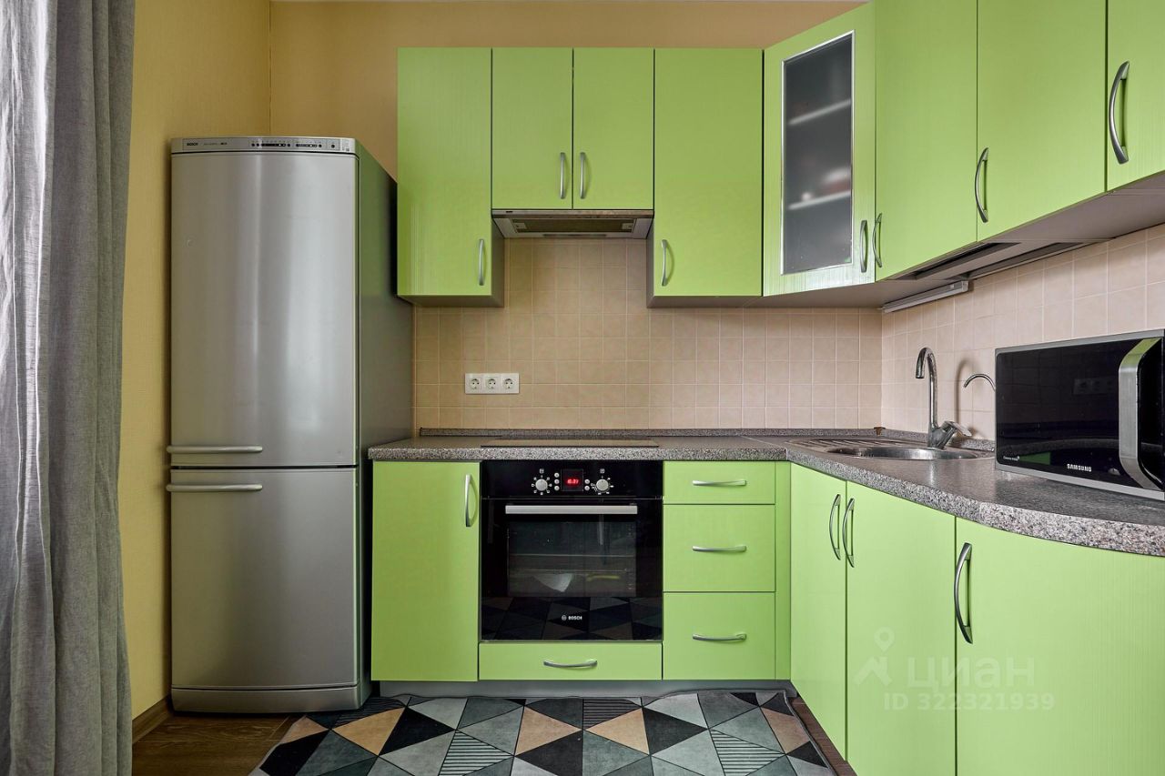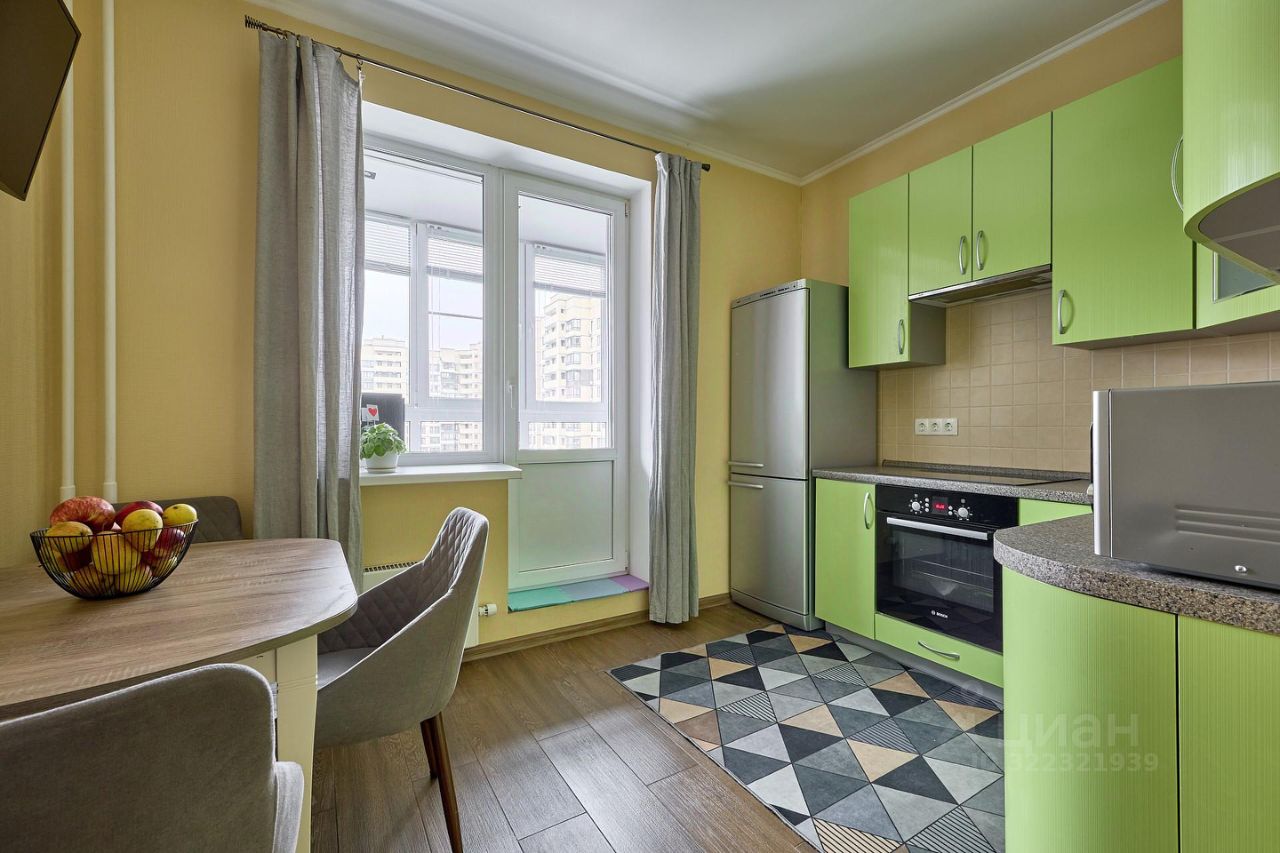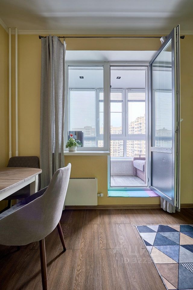 На кухне 9,1 кв.м размещен функциональный и стильный кухонный гарнитур, встроенная техника Bosch, уютный обеденный стол. Выход из кухни на утепленный балкон, который можно использовать как рабочий кабинет и зону отдыха. Кресло раскладывается и превращается в дополнительное спальное место, в нем так же удобно расположиться с чашкой чая, наблюдая за погодой с высоты 11 этажа. В комнате размещены спальная зона с 2-спальной кроватью, вместительный шкаф и детский уголок, который легко трансформировать в гостиную зону, установлен кондиционер. Санузел совмещенный, в душевую зону можно при желании разместить ванну. Качественная сантехника, коллектор разводки воды из Италии.