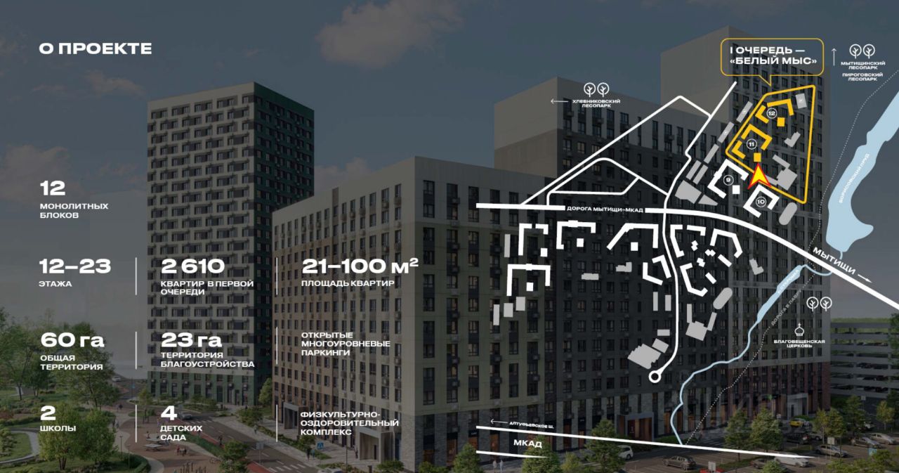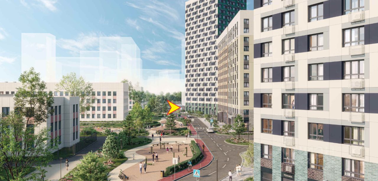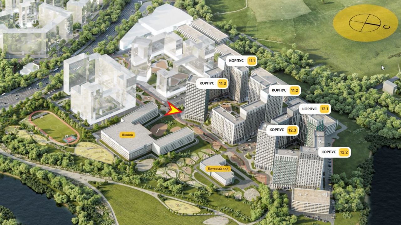 - в окружении высотных жилых корпусов,
