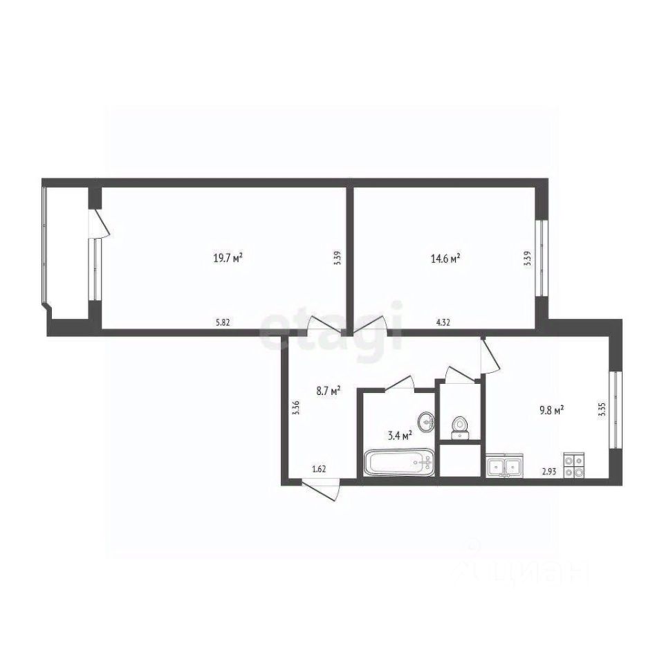 Квартира под авансом. К продаже предлагается светлая двухкомнатная квартира общей площадью 57,5 кв.м. с рациональной планировкой. Просторная изолированная кухня в 10 кв.м. служит полноценным центром квартиры, а две комнаты площадью 19,7 и 14,6 кв.м. обеспечивают уединение для всех членов семьи. Дополнительным преимуществом является наличие лоджии и раздельного санузла. Лоджия утеплена, обшита и обустроена шкафами.Квартира имеет идеально ровные стены,требует косметического ремонта.