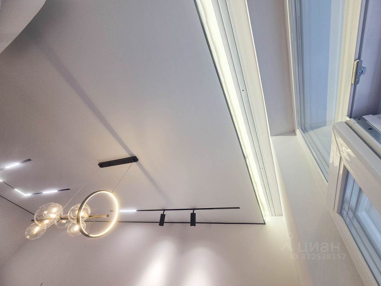 Потолок с тремя видами освещения, в том числе подсветка вдоль окна.
