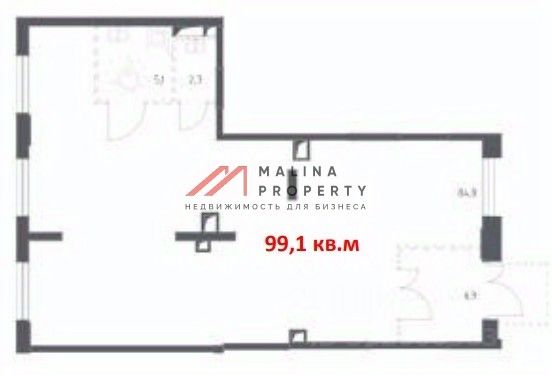 Помещение 99,1 м2 располагается на 1 этаже, открытая планировка, отдельный вход с фасада, высота потолка 4,5 м, витринные окна по фасаду. Парковка перед фасадом. Место для размещения рекламы. Электрическая мощность 18 кВт.