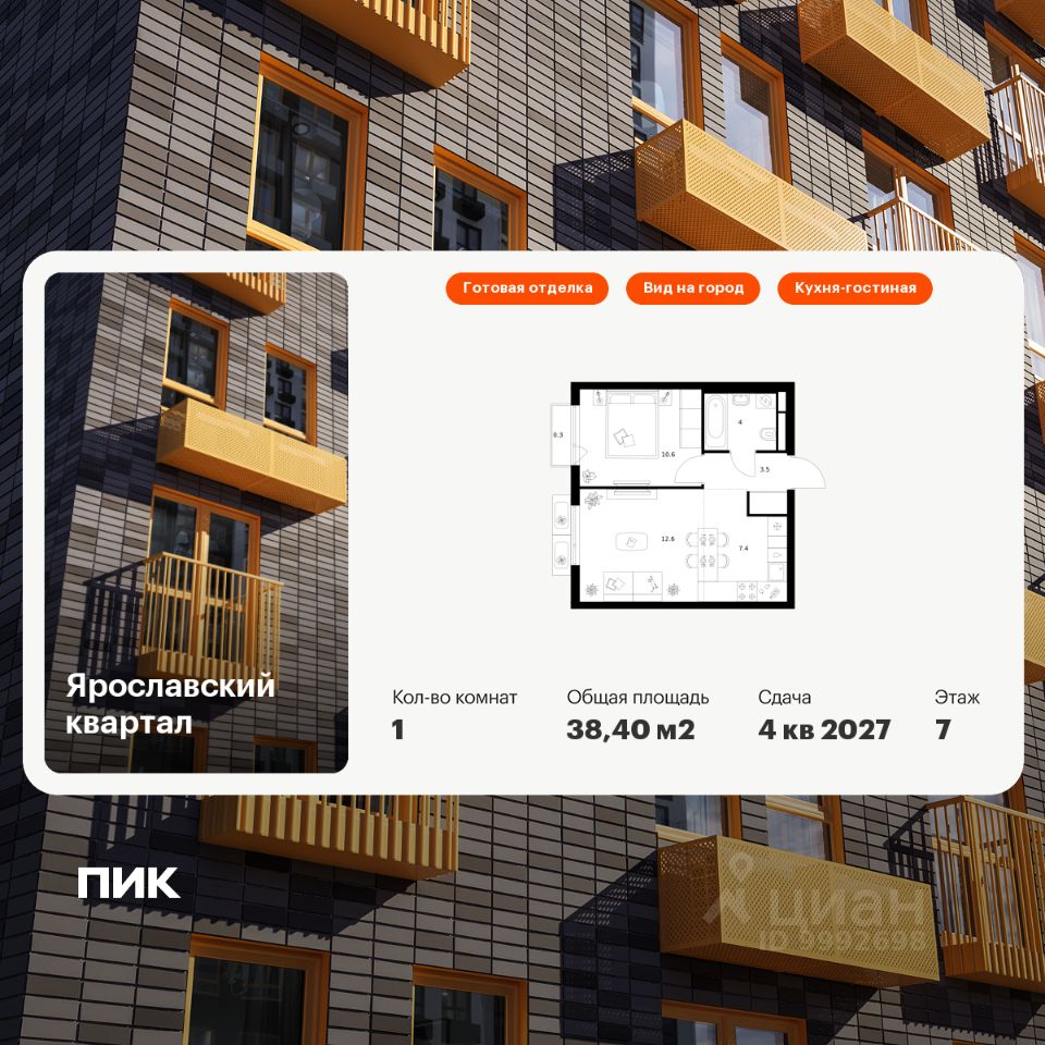 Продаётся 1-комн. квартира площадью 38,4 кв.м на 7 этаже 25 этажного дома (Корпус 2.2, Секция 1) проекта ПИК Ярославский квартал. Светлый просторный подъезд на уровне земли, функциональная планировка, большие окна, c отделкой.