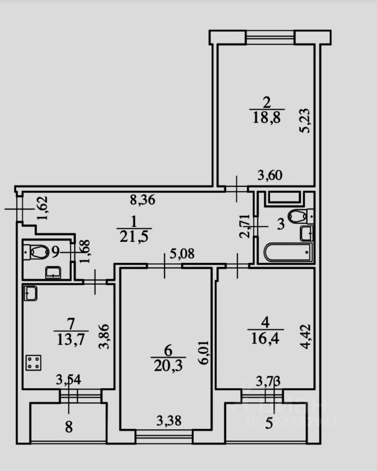 Высокие потолки (2.7 м) ощущение свободы и простора.