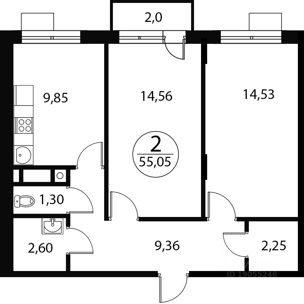 Продаётся 2-комнатная квартира в строящемся доме (Корпус 4), срок сдачи: IV-кв. 2026, общей площадью 55.05 кв.м., на 1 этаже. Расположение, транспортная доступность В состав жилого комплекса ''Катуар'' входят 43 пятиэтажных дома и разнообразная инфраструктура. Это целый посёлок, разместившийся на территории более 30 гектар. Своё название комплекс получил в честь промышленника Льва Катуара, владевшего здесь в XIX веке керамическим заводом, благодаря которому и появился посёлок Некрасовский. До МКАД отсюда 22 километра. Совсем рядом, в пятистах метрах, располагается Дмитровское шоссе. До ближайшей станции московского метро ''Алтуфьево'' можно доехать за 35-40 минут. В трёхстах метрах от комплекса расположена железнодорожная станция ''Катуар'', от которой отходит множество электропоездов до Савёловского вокзала Москвы (самый быстрый из них преодолевает это расстояние за 41 минуту, а до ближайших станций метро можно доехать ещё быстрее). Это самый удобный способ добраться от ЖК до столицы. Примерно в 30-35 минутах езды от комплекса располагаются подмосковные города Дмитров и Мытищи. Инфраструктура В жилом комплексе ''Катуар'' имеется собственная внутренняя инфраструктура, которая включает в себя: детский сад, многофункциональный торговый и общественно-деловой центр, магазины, спортивные площадки, зону барбекю, многоуровневый паркинг и другие объекты. Жителям комплекса не придётся каждый день ездить за покупками в соседние поселки. Поблизости от комплекса (в посёлке Некрасовский и в деревне Сухарево), работают: детские сады, школы, больницы, поликлиники, Дворцы культуры, множество магазинов, мясокомбинат ''Дмитровские колбасы'', конные клубы, санаторий, дворянская усадьба ''Марфино'', построенная в готическом стиле, горнолыжные курорты, СПА-отели. Для того чтобы отдохнуть на природе, жителям Катуара не придется уезжать далеко от дома. Поблизости находятся такие природные зоны, как: обширный Марфинский лесопарк, река Уча, река Саморядовка, несколько прудов, Клязьминское и Икшинское водохранилища. Надёжность застройщика Строительством жилого комплекса ''Катуар'' занималась компания ООО ''Специализированный застройщик ''Катуар Девелопмент''. Организация входит в состав образованной в 2002 году группы компаний ''Ферро-Строй'', которая специализируется на строительстве в Москве жилой, коммерческой и социальной недвижимости. На счету группы компаний ''Ферро-Строй'' строительство в Москве жилого квартала ''Ривер парк'', жилых комплексов ''Примавера'', ''Парковая'', ''Дипломат'', бизнес-центров класса А Pallau RB, Pallau NK, Pallau OST, Pallau MD, торгового центра ''Ключевой'', лечебно-профилактического центра на улице Селезневская, ДОУ на улице Корабельная, школы на улице Речников и другие объекты. Архитектура В жилом комплексе ''Катуар'' представлены квартиры улучшенной планировки с количеством комнат от одной до трех и площадью от 29 кв. метров до 119 кв. метров. Потолки будут иметь высоту 280 см. Общая площадь квартир составит 165 тыс. кв. метров. Квартиры сдаются как с отделкой